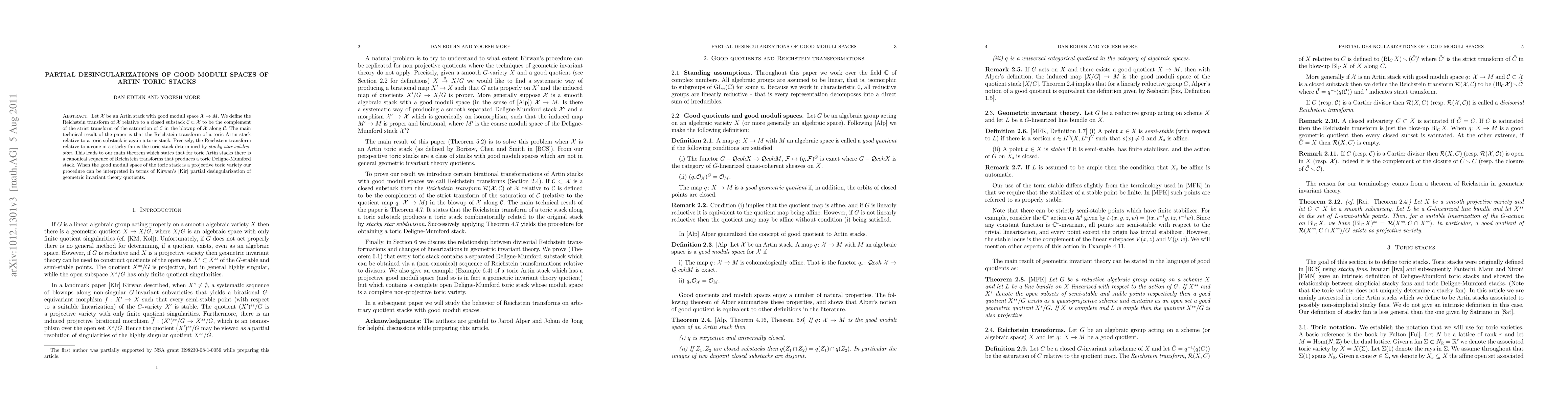 This paper introduces Reichstein transforms for Artin stacks with good moduli spaces, proving that the transform of an Artin toric stack remains an Artin toric stack. The main result is a canonical sequence of these transforms that desingularizes the stack into a Deligne-Mumford toric stack, with projective good moduli spaces aligning with Kirwan's partial desingularization method.