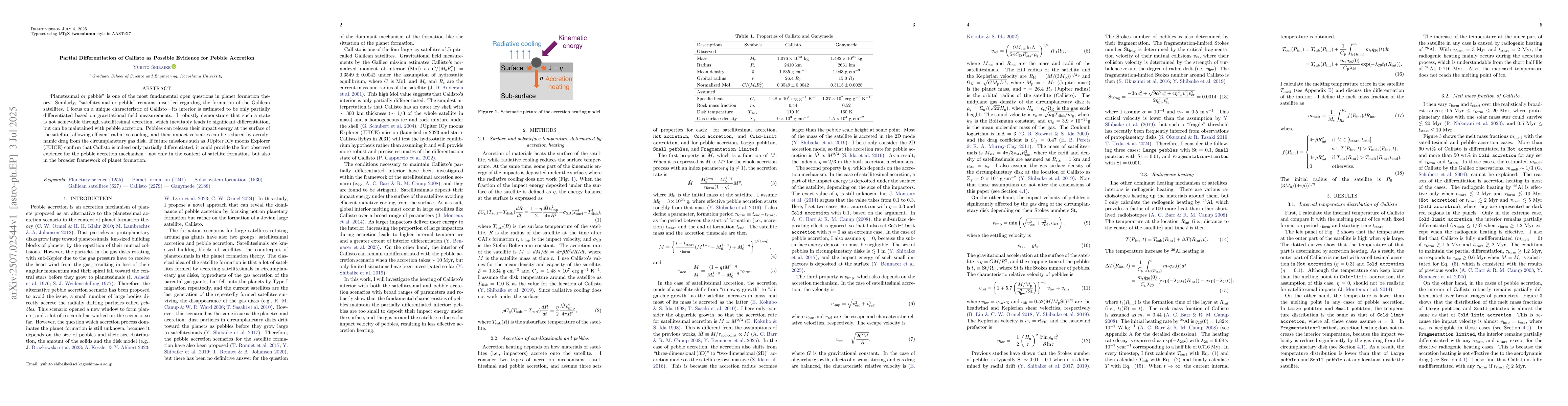 "Planetesimal or pebble" is one of the most fundamental open questions in planet formation theory. Similarly, "satellitesimal or pebble" remains unsettled regarding the formation of the Galilean satellites. I focus on a unique characteristic of Callisto--its interior is estimated to be only partially differentiated based on gravitational field measurements. I robustly demonstrate that such a state is not achievable through satellitesimal accretion, which inevitably leads to significant differentiation, but can be maintained with pebble accretion. Pebbles can release their impact energy at the surface of the satellite, allowing efficient radiative cooling, and their impact velocities can be reduced by aerodynamic drag from the circumplanetary gas disk. If future missions such as JUpiter ICy moons Explorer (JUICE) confirm that Callisto is indeed only partially differentiated, it could provide the first observed evidence for the pebble accretion mechanism--not only in the context of satellite formation, but also in the broader framework of planet formation.
