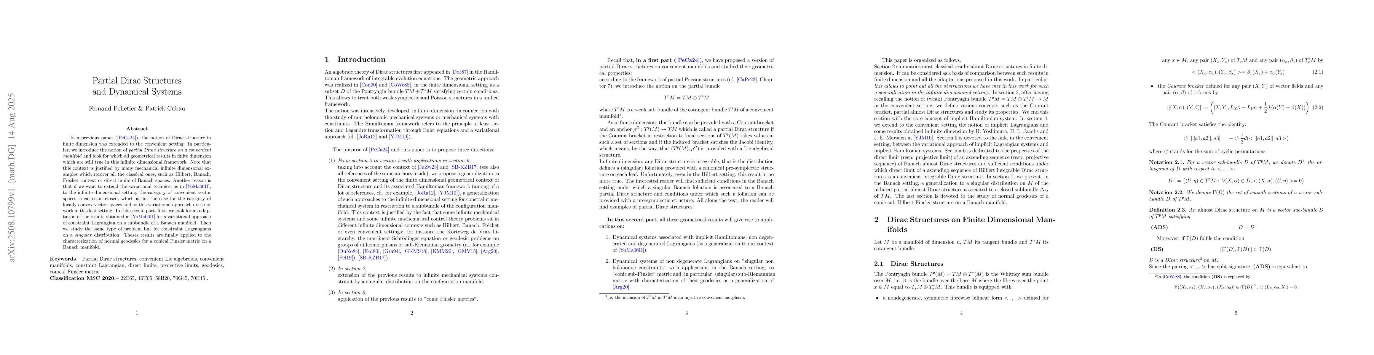 In a previous paper (PeCa24), the notion of Dirac structure in finite dimension was extended to the convenient setting. In particular, we introduce the notion of \emph{partial Dirac structure on a convenient manifold} and look for which all geometrical results in finite dimension which are still true in this infinite dimensional framework. Note that this context is justified by many mechanical infinite dimensional examples which recover all the classical ones, such as Hilbert, Banach, Fr\'{e}chet context or direct limits of Banach spaces. Another reason is that if we want to extend the variational technics, as in YoMa06II, to the infinite dimensional setting, the category of convenient vector spaces is cartesian closed, which is not the case for the category of locally convex vector spaces and so this variational approach does not work in this last setting. In this second part, first, we look for an adaptation of the results obtained in YoMa06II for a variational approach of constraint Lagrangian on a subbundle of a Banach manifold. Then we study the same type of problem but for constraint Lagrangians on a \textit{singular} distribution. Theses results are finally applied to the characterization of normal geodesics for a conical Finsler metric on a Banach manifold.