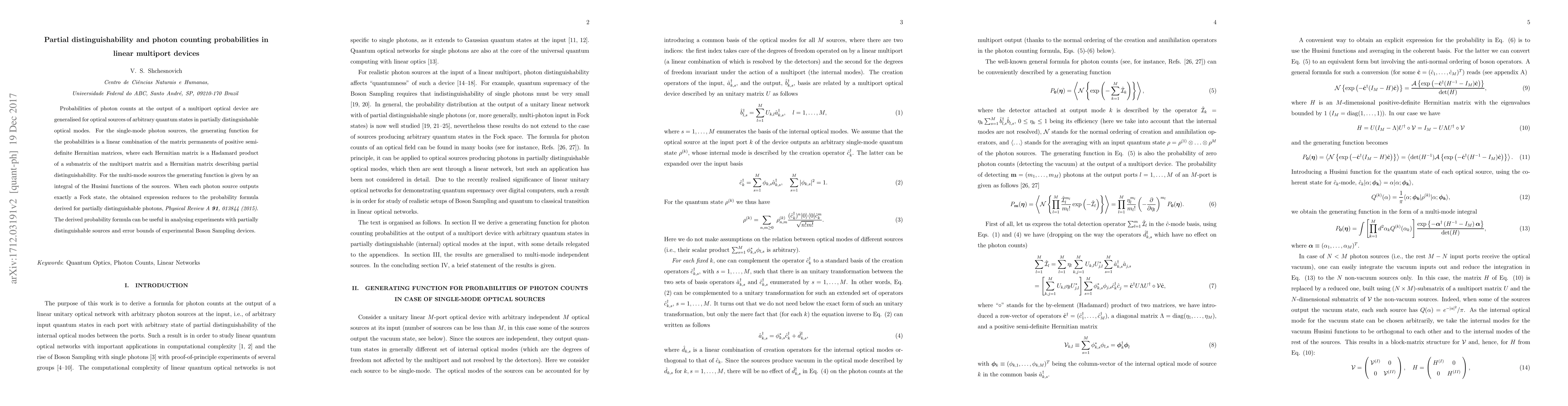 This paper generalises photon counting probabilities for multiport optical devices with partially distinguishable modes, deriving a generating function based on matrix permanents for single-mode sources and Husimi functions for multi-mode sources. The results are applicable to analysing Boson Sampling experiments and partially distinguishable photon sources.