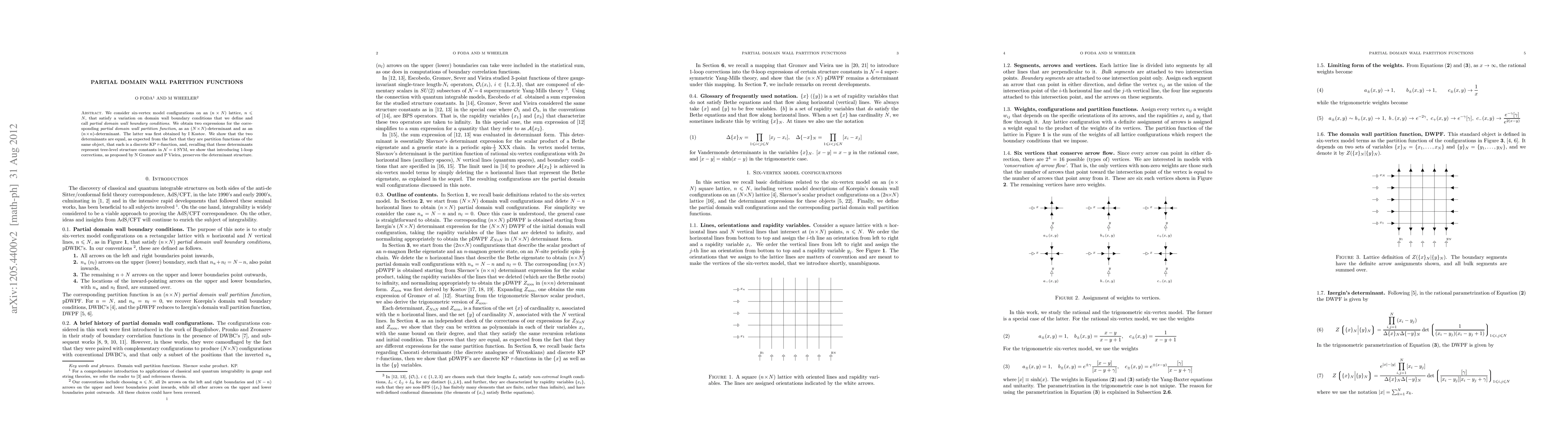 We consider six-vertex model configurations on an n-by-N lattice, n =< N, that satisfy a variation on domain wall boundary conditions that we define and call "partial domain wall boundary conditions". We obtain two expressions for the corresponding "partial domain wall partition function", as an (N-by-N)-determinant and as an (n-by-n)-determinant. The latter was first obtained by I Kostov. We show that the two determinants are equal, as expected from the fact that they are partition functions of the same object, that each is a discrete KP tau-function, and, recalling that these determinants represent tree-level structure constants in N=4 SYM, we show that introducing 1-loop corrections, as proposed by N Gromov and P Vieira, preserves the determinant structure.