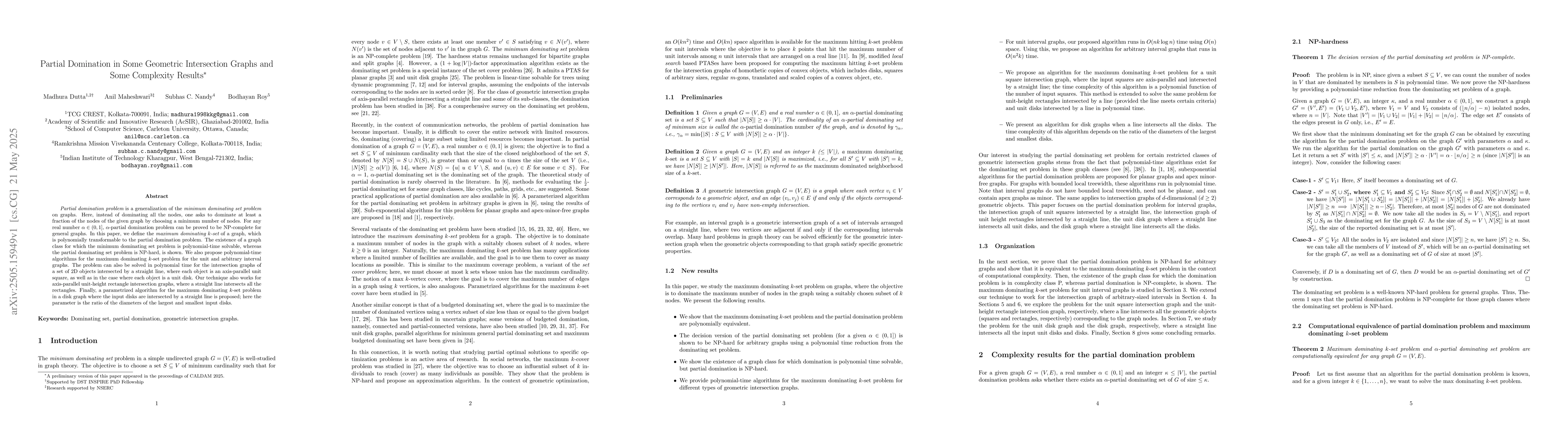 Researchers prove that certain types of geometric intersection graphs have efficient algorithms for partial domination problems, while others remain NP-complete.