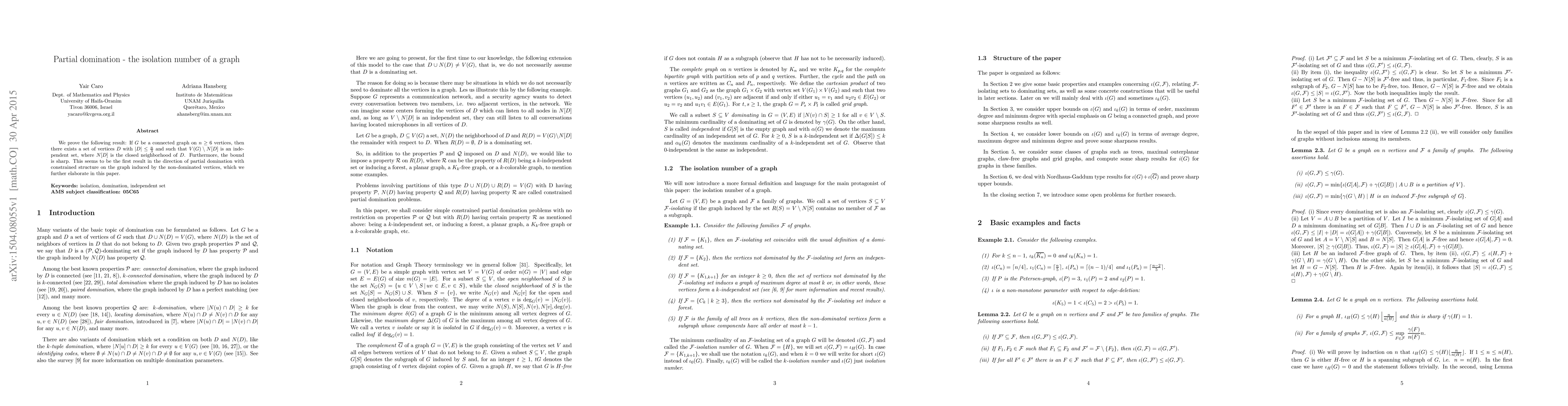 A graph with 6 or more vertices has a subset of at most n/3 vertices that can isolate an independent set of non-dominated vertices when removed from the graph. This bound is sharp and represents a new direction in partial domination research.