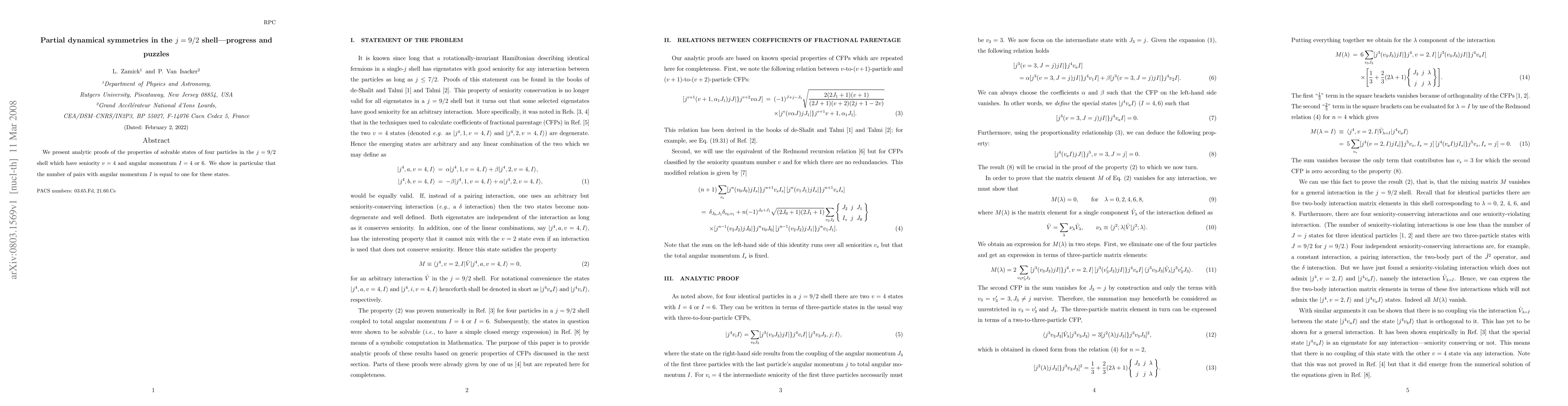 Summary: The paper provides analytic proofs for the properties of four-particle states in the g9/2 shell with seniority v=4 and angular momentum I=4 or 6, demonstrating that these states contain exactly one pair with angular momentum I. This reveals a unique structural feature in the g9/2 shell model.