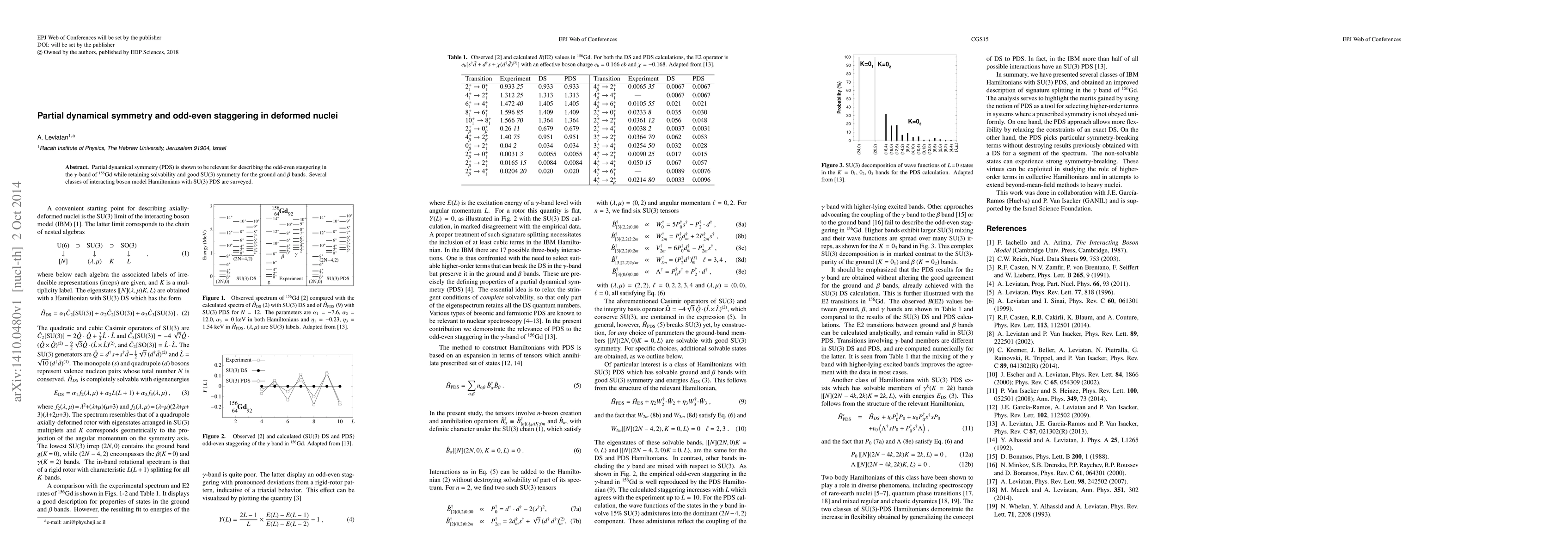 Partial dynamical symmetry (PDS) is shown to be relevant for describing the odd-even staggering in the $\gamma$-band of $^{156}$Gd while retaining solvability and good SU(3) symmetry for the ground and $\beta$ bands. Several classes of interacting boson model Hamiltonians with SU(3) PDS are surveyed.