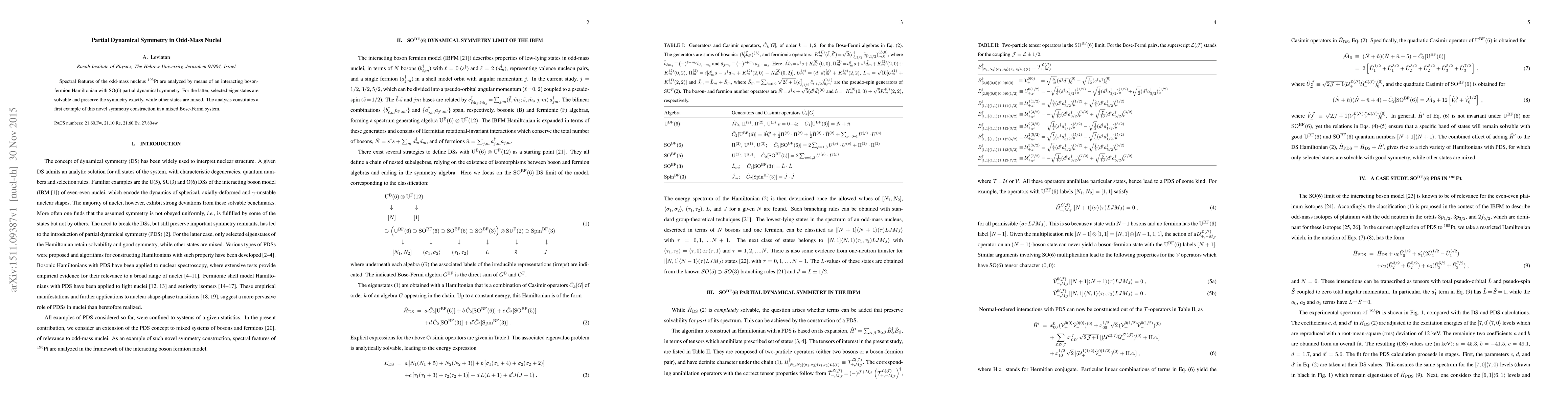 This paper analyzes the spectral features of the odd-mass nucleus $^{195}$Pt using an interacting boson-fermion Hamiltonian with SO(6) partial dynamical symmetry, revealing a novel symmetry construction in mixed Bose-Fermi systems where selected eigenstates preserve symmetry exactly.