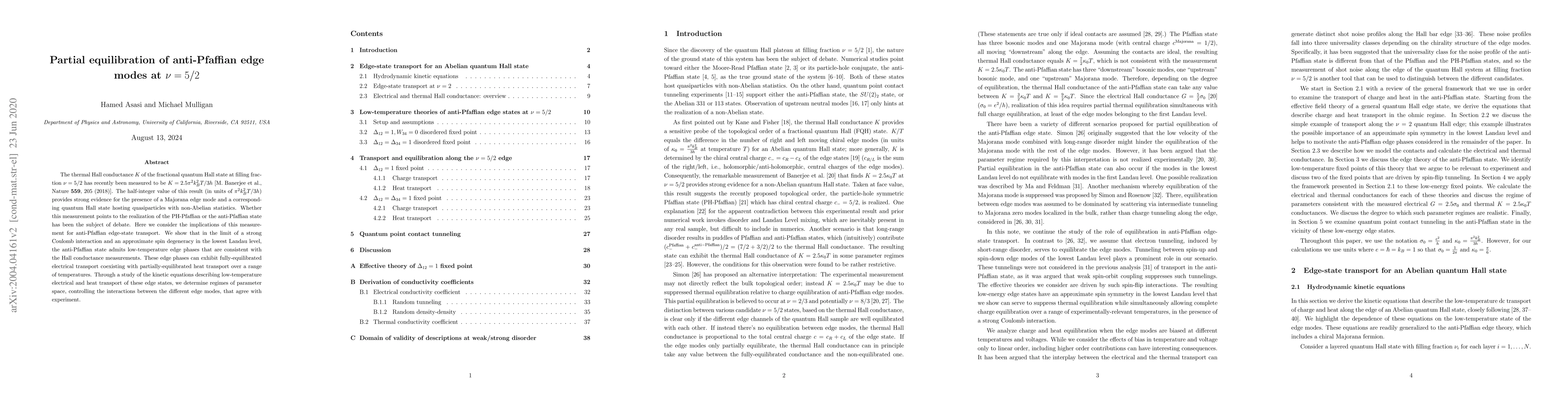 Researchers investigate the presence of a Majorana edge mode in a quantum Hall state at filling fraction ν=5/2 and find that the anti-Pfaffian state can exhibit partially-equilibrated electrical transport coexisting with fully-equilibrated heat transport at low temperatures.