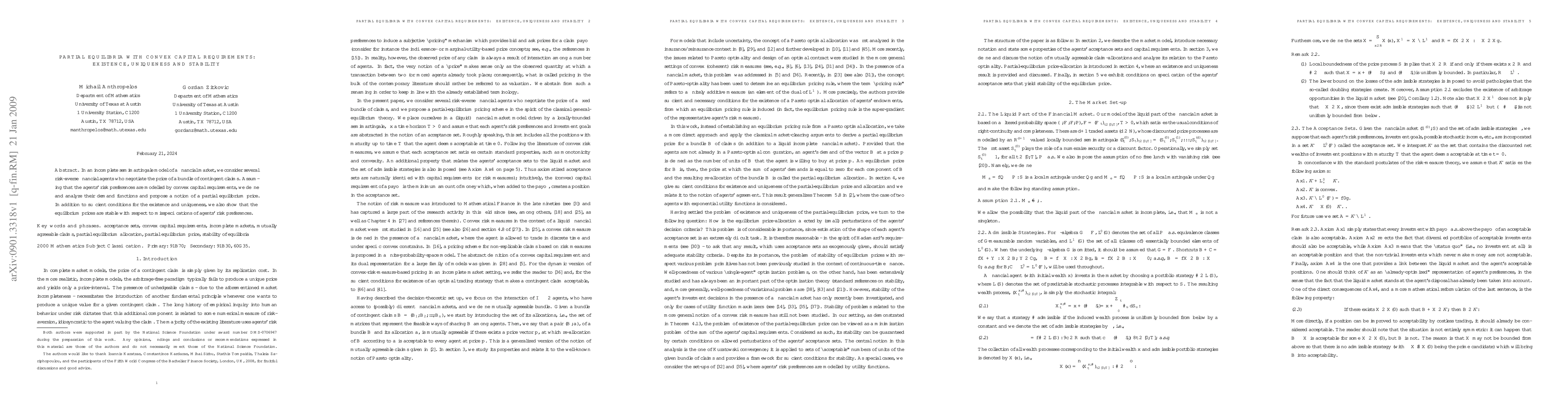 In an incomplete semimartingale model of a financial market, we consider several risk-averse financial agents who negotiate the price of a bundle of contingent claims. Assuming that the agents' risk preferences are modelled by convex capital requirements, we define and analyze their demand functions and propose a notion of a partial equilibrium price. In addition to sufficient conditions for the existence and uniqueness, we also show that the equilibrium prices are stable with respect to misspecifications of agents' risk preferences.