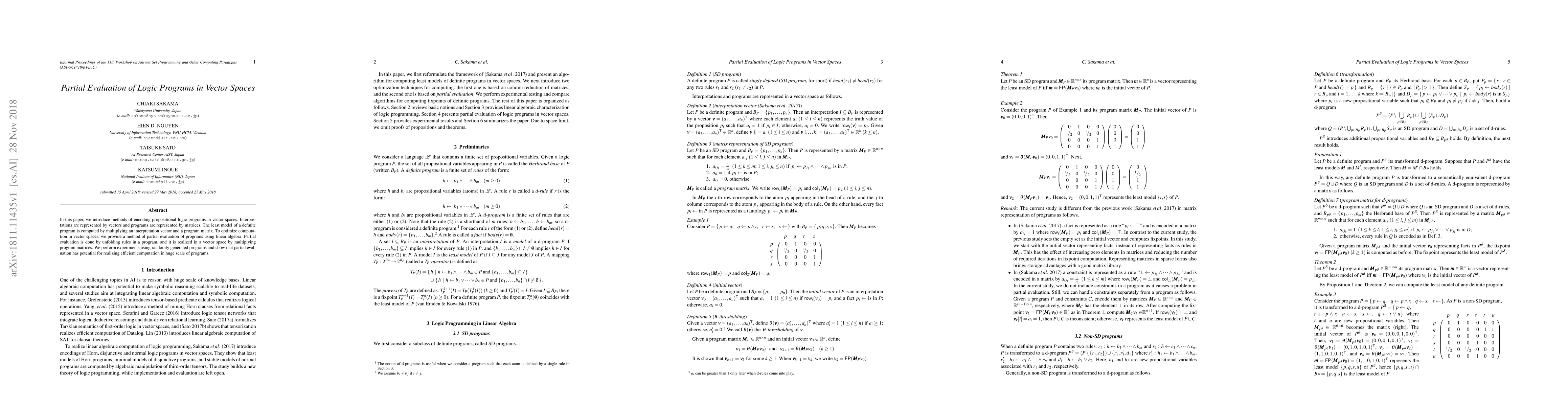 Researchers introduce a method to represent logic programs in vector spaces, enabling efficient computation through partial evaluation using linear algebra. This approach has potential for optimizing computations in large-scale programs.