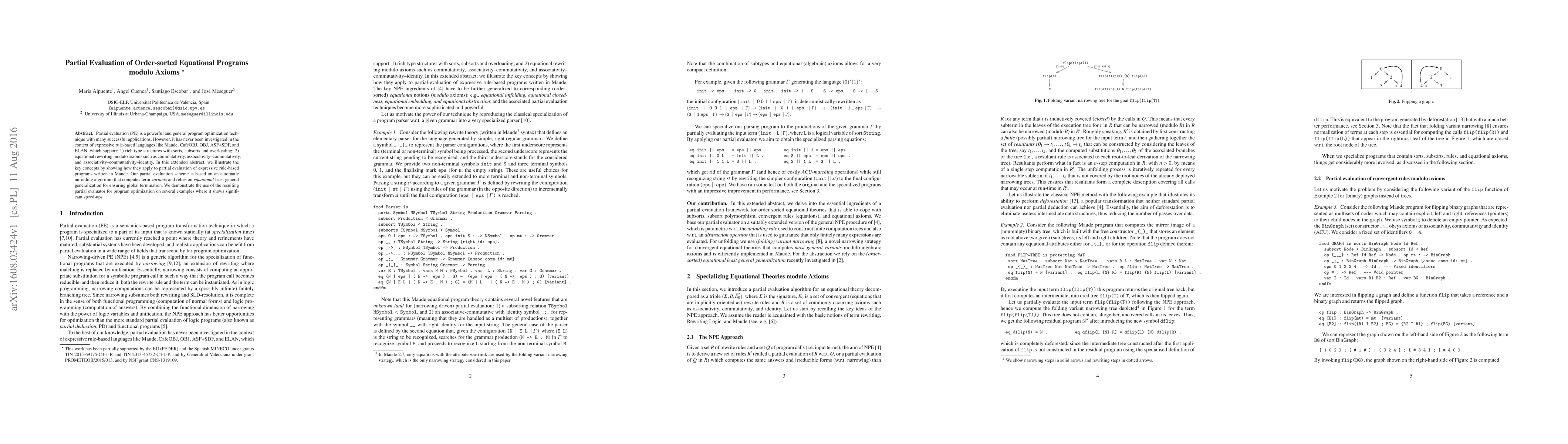 This paper explores the application of partial evaluation to rule-based languages like Maude that support complex type structures and equational rewriting. It introduces a novel partial evaluation scheme based on automatic unfolding and equational least general generalization, demonstrating significant optimizations in several examples.