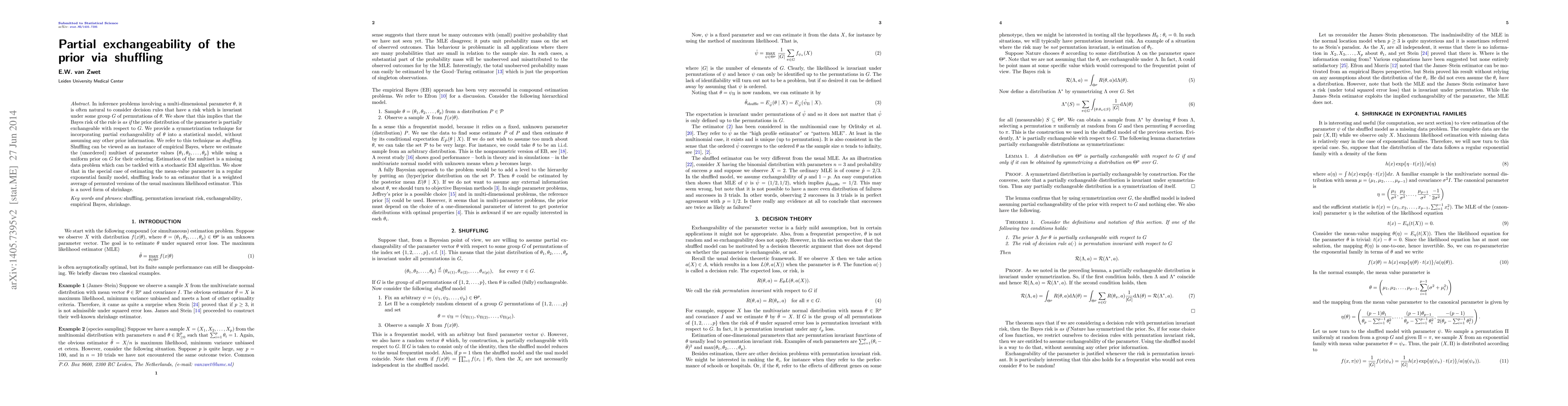 In inference problems involving a multi-dimensional parameter $\theta$, it is often natural to consider decision rules that have a risk which is invariant under some group $G$ of permutations of $\theta$. We show that this implies that the Bayes risk of the rule is {\em as if} the prior distribution of the parameter is partially exchangeable with respect to $G$. We provide a symmetrization technique for incorporating partial exchangeability of $\theta$ into a statistical model, without assuming any other prior information. We refer to this technique as {\em shuffling}. Shuffling can be viewed as an instance of empirical Bayes, where we estimate the (unordered) multiset of parameter values $\{\theta_1,\theta_2,\dots,\theta_p\}$ while using a uniform prior on $G$ for their ordering. Estimation of the multiset is a missing data problem which can be tackled with a stochastic EM algorithm. We show that in the special case of estimating the mean-value parameter in a regular exponential family model, shuffling leads to an estimator that is a weighted average of permuted versions of the usual maximum likelihood estimator. This is a novel form of shrinkage.
