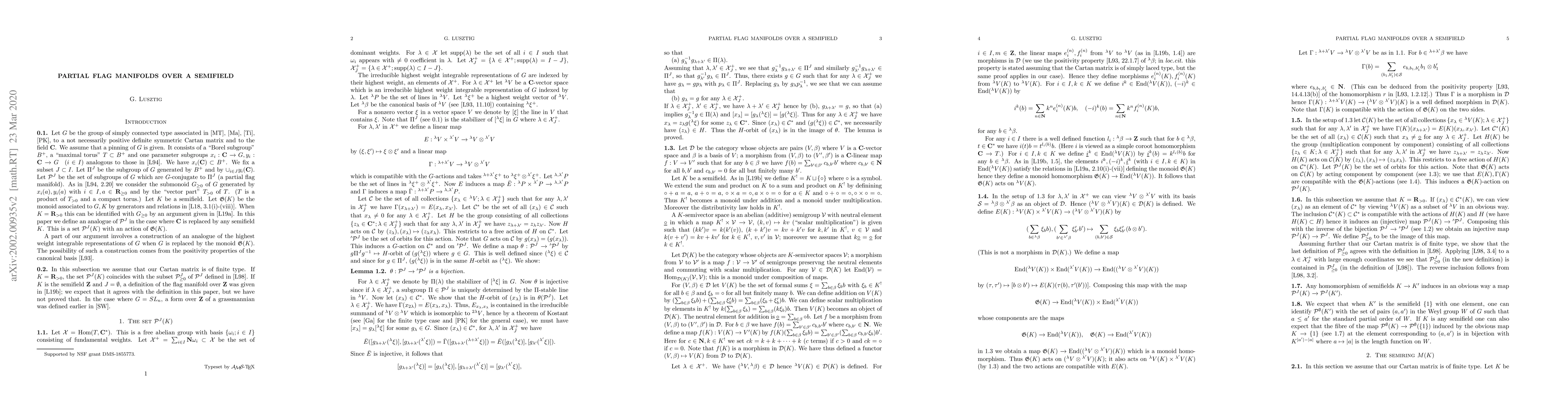 For any semifield K we define a K-form of a partial flag manifold of a semisimple group G of simply laced type over the complex numbers. The definition is in terms of the theory of canonical bases.