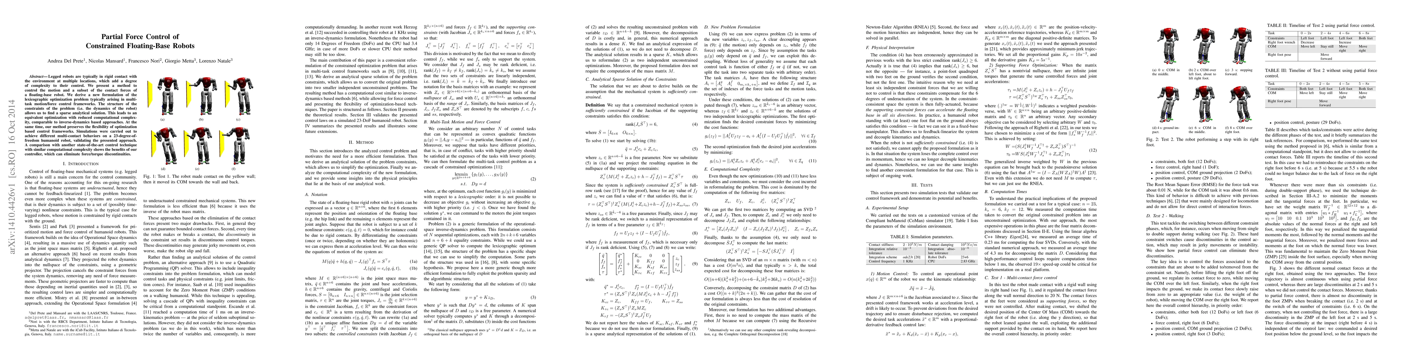 This paper proposes a method for partial force control of floating-base robots, focusing on a subset of contact forces while maintaining motion control. It introduces a new sparse analytical solution to the lexicographic optimization problem, reducing computational complexity while maintaining flexibility and eliminating force/torque discontinuities.