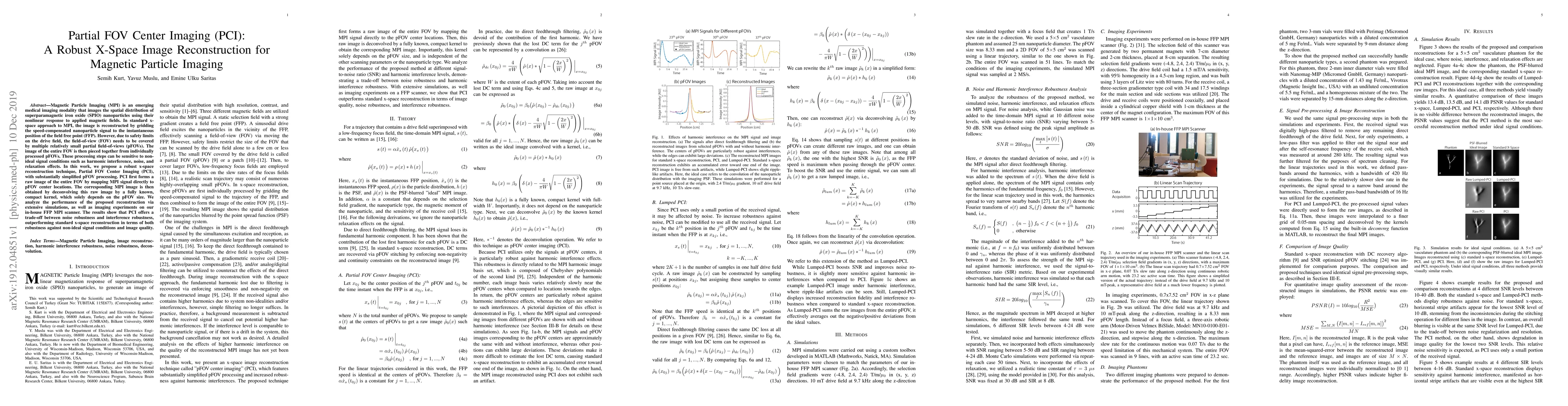 The paper proposes a new x-space reconstruction technique called Partial FOV Center Imaging (PCI) for Magnetic Particle Imaging (MPI), which simplifies the processing of multiple small partial field-of-views (pFOVs) to reconstruct the entire FOV. PCI shows improved robustness and image quality compared to standard x-space reconstruction, especially under non-ideal signal conditions.
