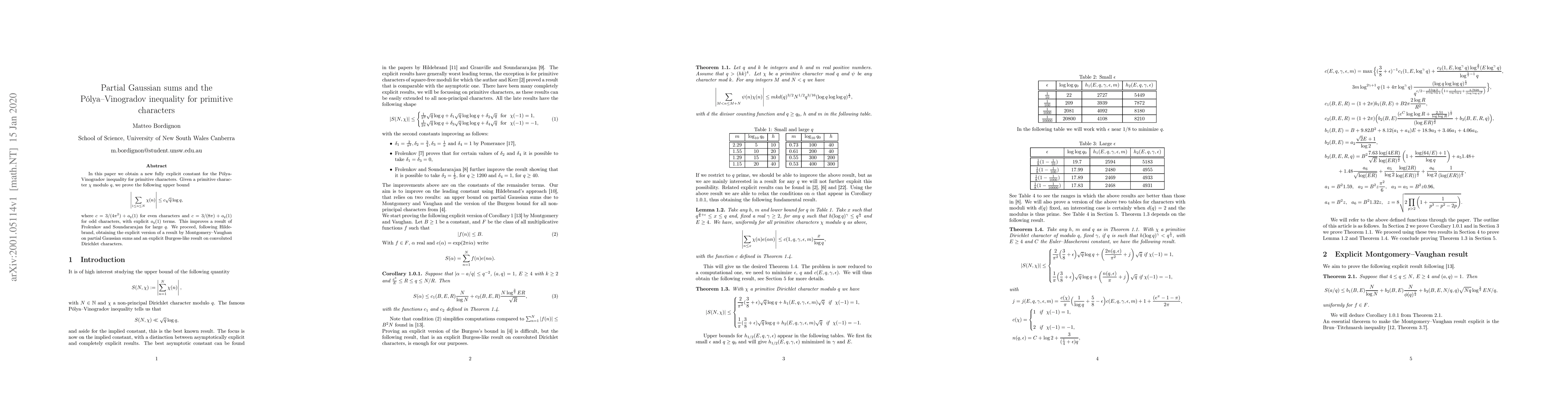 This paper improves an existing result on the Polya-Vinogradov inequality for primitive characters, providing a new fully explicit constant for upper bounds on partial Gaussian sums.