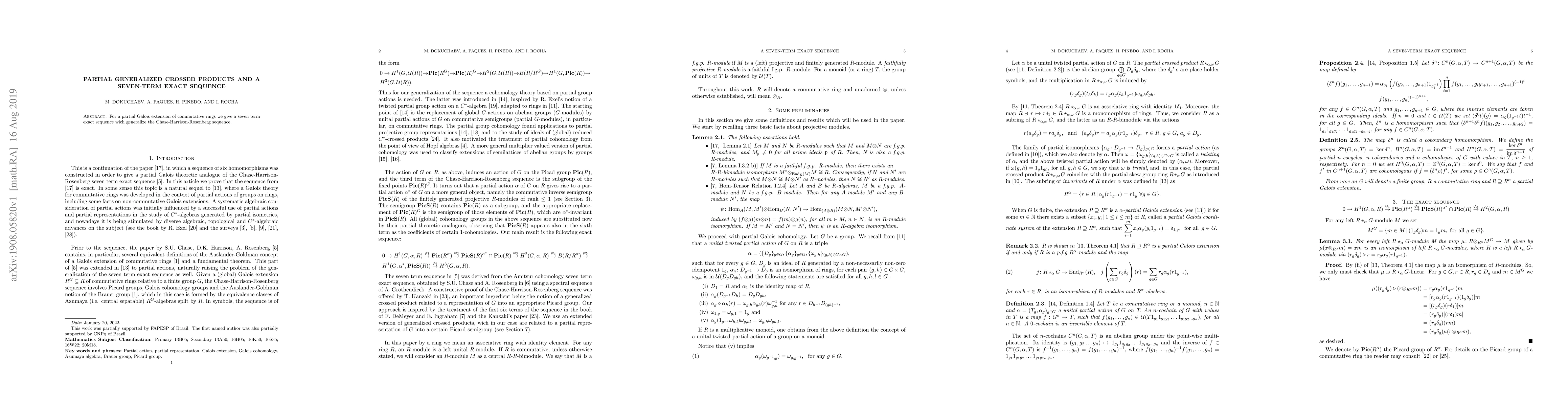 Summary: This paper presents a seven-term exact sequence for partial Galois extensions of commutative rings, extending the Chase-Harrison-Rosenberg sequence and providing a new framework for understanding these extensions.