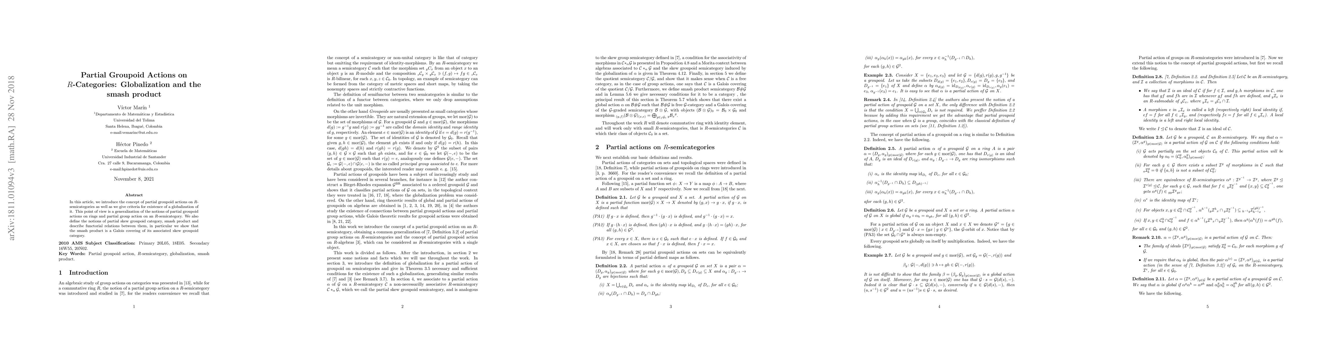 Summary: This paper generalizes the notion of partial groupoid actions to R-semicategories, introduces the concept of globalization, and defines the partial skew groupoid category and smash product, demonstrating their functorial relations and that the smash product serves as a Galois covering for the associated skew groupoid category.