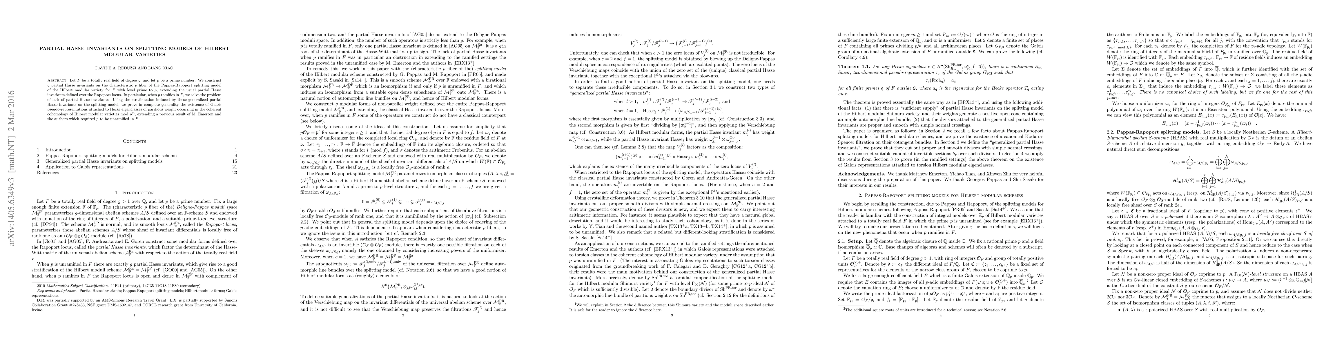This paper constructs $g$ partial Hasse invariants on the characteristic $p$ fiber of a splitting model for Hilbert modular varieties over a totally real field $F$, addressing the issue of lack of invariants when $p$ ramifies in $F$. It proves the existence of Galois pseudo-representations attached to Hecke eigenclasses in the cohomology of Hilbert modular varieties modulo $p^m$.