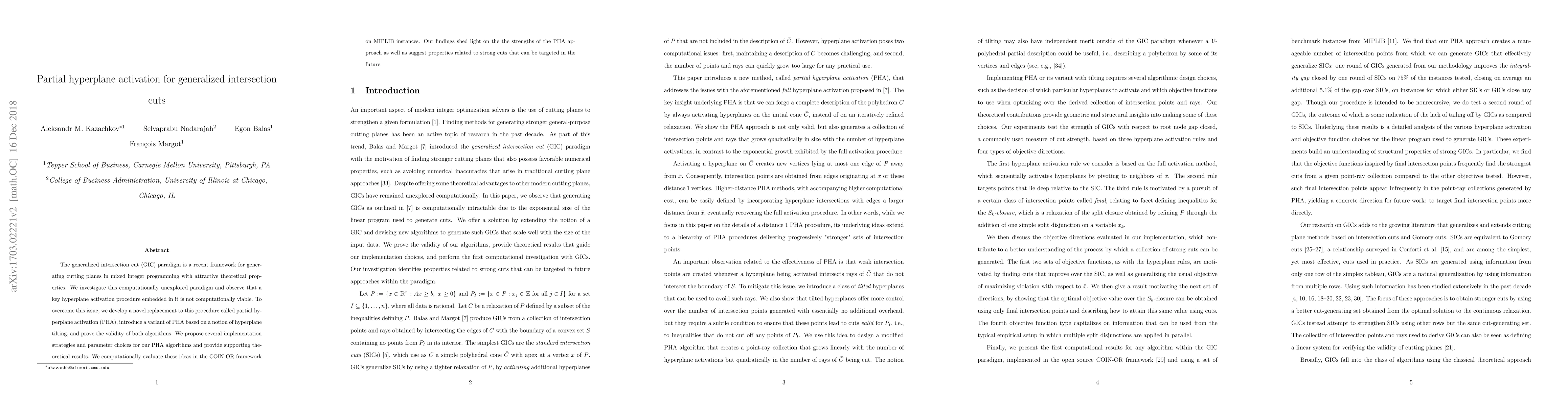 This paper introduces a novel partial hyperplane activation (PHA) method to improve the computational viability of generalized intersection cuts (GIC) in mixed integer programming. The authors propose PHA algorithms, evaluate their effectiveness in the COIN-OR framework, and provide theoretical support for their validity and potential for generating strong cuts.