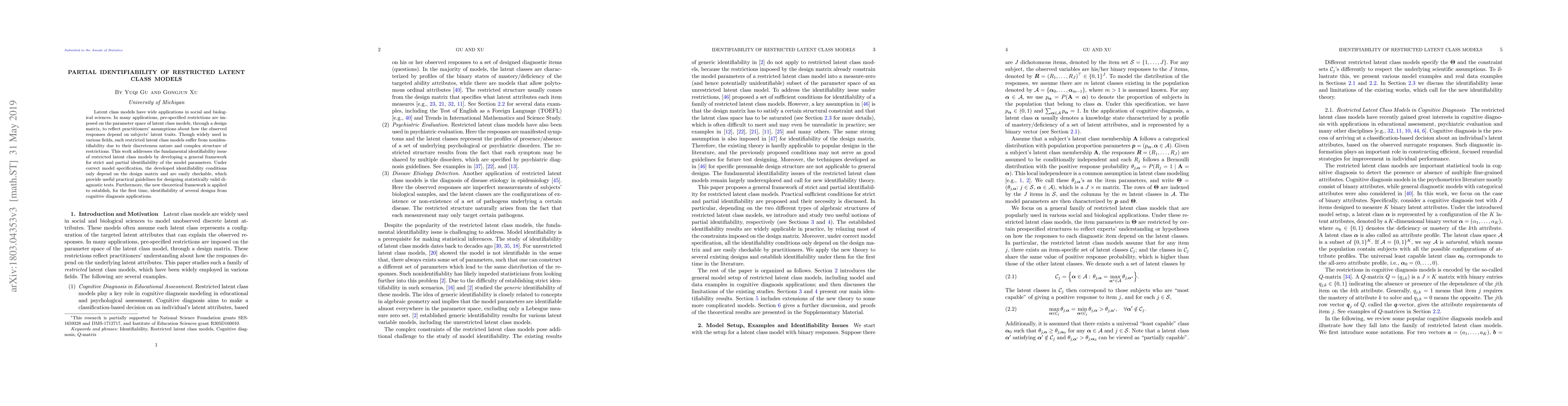 Latent class models have wide applications in social and biological sciences. In many applications, pre-specified restrictions are imposed on the parameter space of latent class models, through a design matrix, to reflect practitioners' assumptions about how the observed responses depend on subjects' latent traits. Though widely used in various fields, such restricted latent class models suffer from non-identifiability due to their discreteness nature and complex structure of restrictions. This work addresses the fundamental identifiability issue of restricted latent class models by developing a general framework for strict and partial identifiability of the model parameters. Under correct model specification, the developed identifiability conditions only depend on the design matrix and are easily checkable, which provide useful practical guidelines for designing statistically valid diagnostic tests. Furthermore, the new theoretical framework is applied to establish, for the first time, identifiability of several designs from cognitive diagnosis applications.