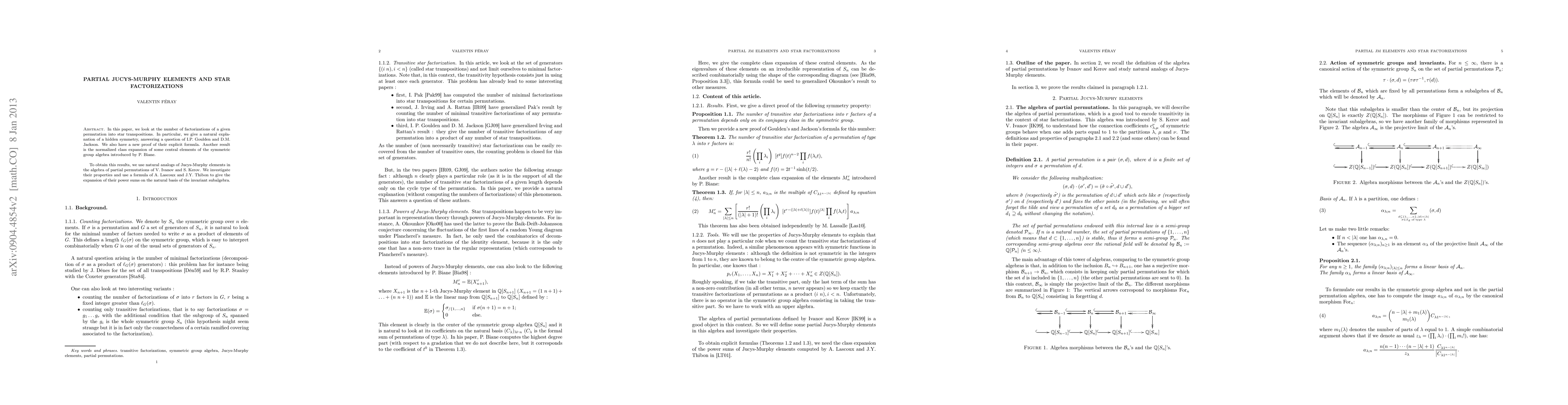 In this paper, we look at the number of factorizations of a given permutation into star transpositions. In particular, we give a natural explanation of a hidden symmetry, answering a question of I.P. Goulden and D.M. Jackson. We also have a new proof of their explicit formula. Another result is the normalized class expansion of some central elements of the symmetric group algebra introduced by P. Biane. To obtain this results, we use natural analogs of Jucys-Murphy elements in the algebra of partial permutations of V. Ivanov and S. Kerov. We investigate their properties and use a formula of A. Lascoux and J.Y. Thibon to give the expansion of their power sums on the natural basis of the invariant subalgebra.