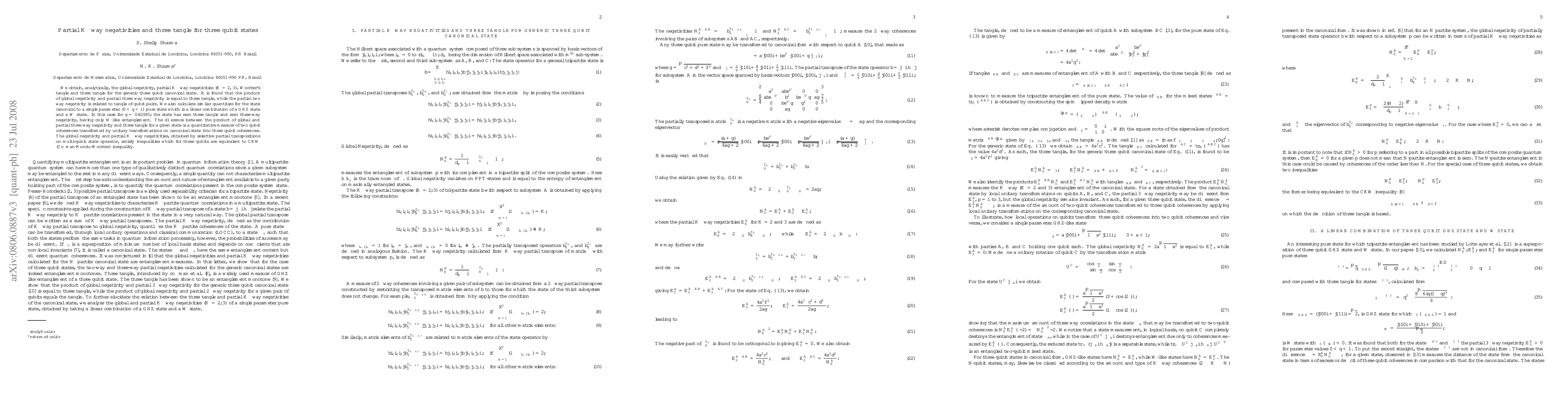 negativity is related to tangle of qubit pairs. We also calculate similar