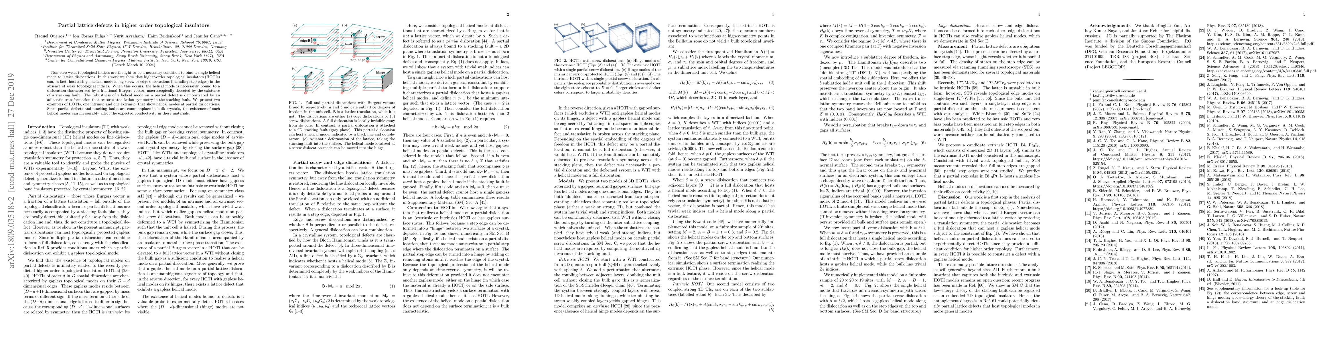 This paper demonstrates that higher-order topological insulators can host helical modes along screw or edge dislocations without requiring nonzero weak topological indices, showing robustness through an adiabatic transformation. Such helical modes, bound to partial lattice defects like stacking faults, can impact the conductivity of bulk crystals.