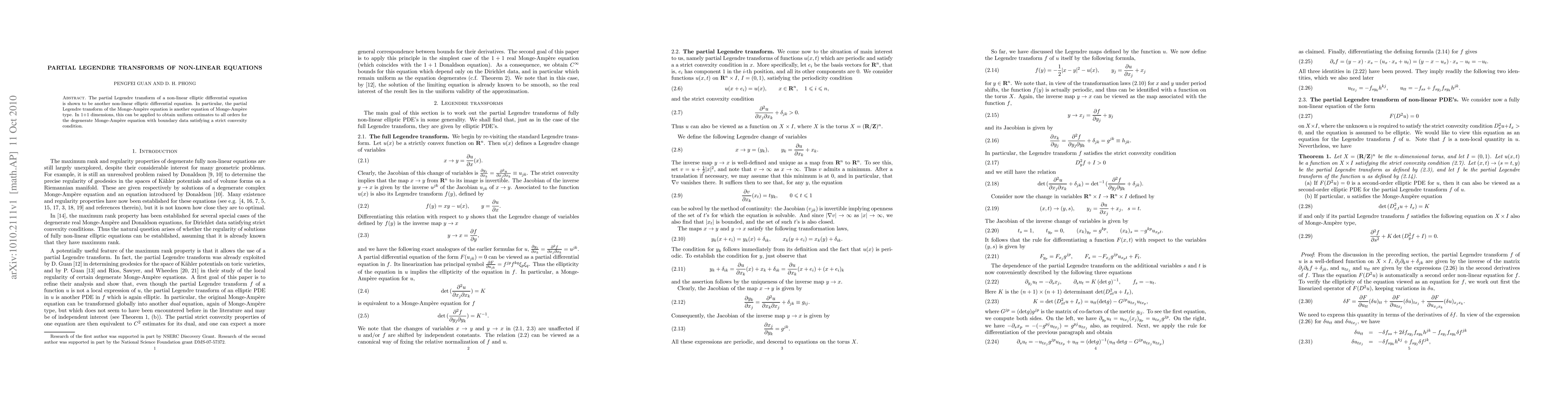 The partial Legendre transform of a non-linear elliptic differential equation is another non-linear elliptic differential equation, offering uniform estimates to all orders for certain degenerate Monge-Ampère equations.