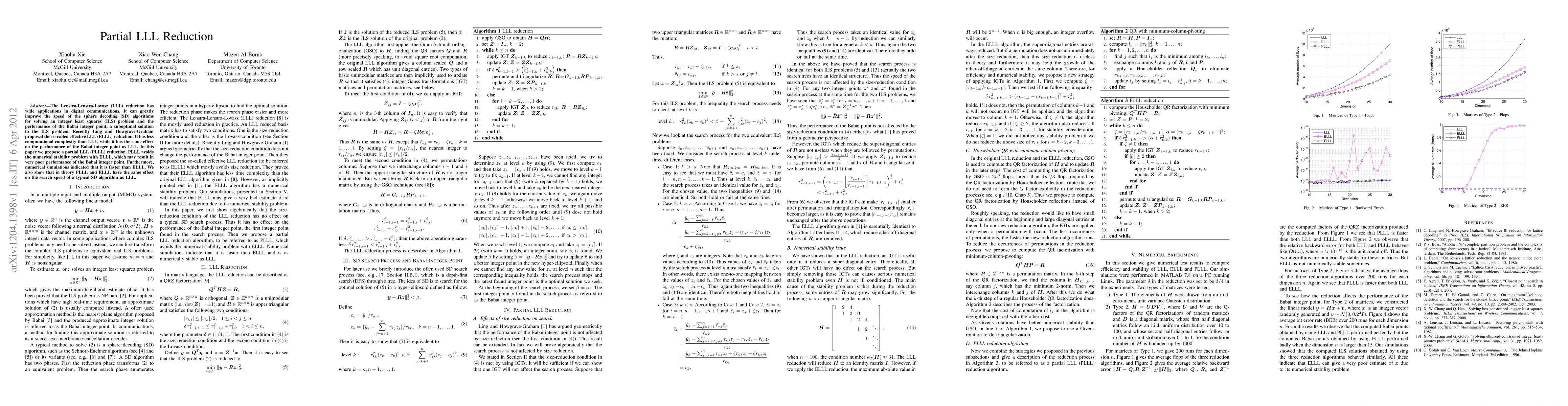 The Lenstra-Lenstra-Lovasz (LLL) reduction has wide applications in digital communications. It can greatly improve the speed of the sphere decoding (SD) algorithms for solving an integer least squares (ILS) problem and the performance of the Babai integer point, a suboptimal solution to the ILS problem. Recently Ling and Howgrave-Graham proposed the so-called effective LLL (ELLL) reduction. It has less computational complexity than LLL, while it has the same effect on the performance of the Babai integer point as LLL. In this paper we propose a partial LLL (PLLL) reduction. PLLL avoids the numerical stability problem with ELLL, which may result in very poor performance of the Babai integer point. Furthermore, numerical simulations indicated that it is faster than ELLL. We also show that in theory PLLL and ELLL have the same effect on the search speed of a typical SD algorithm as LLL.