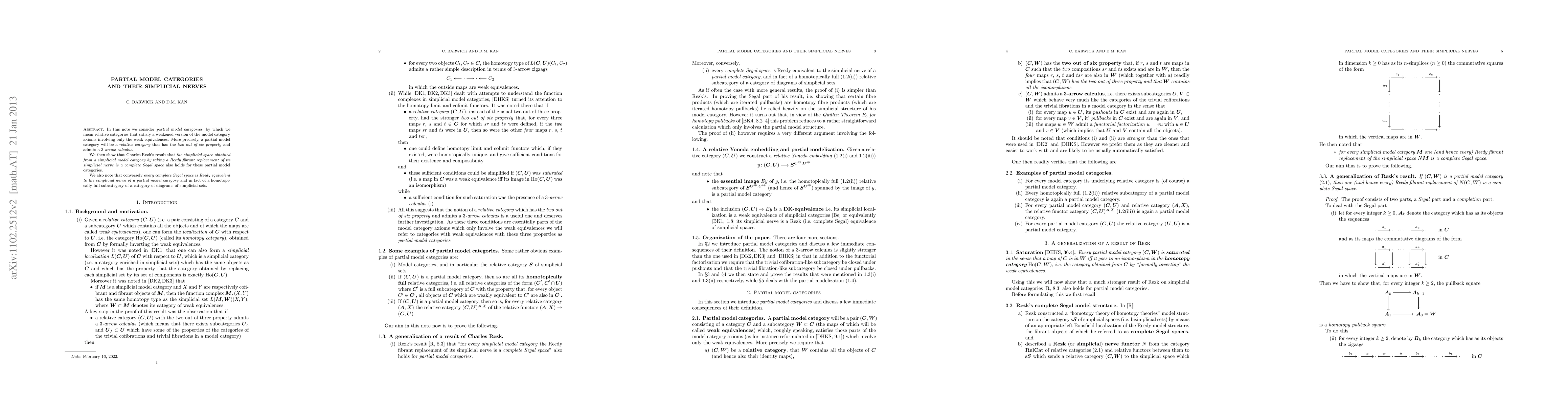 In this note we consider partial model categories, by which we mean relative categories that satisfy a weakened version of the model category axioms involving only the weak equivalences. More precisely, a partial model category will be a relative category that has the two out of six property and admits a 3-arrow calculus. We then show that Charles Rezk's result that the simplicial space obtained from a simplicial model category by taking a Reedy fibrant replacement of its simplicial nerve is a complete Segal space also holds for these partial model categories. We also note that conversely every complete Segal space is Reedy equivalent to the simplicial nerve of a partial model category and in fact of a homotopically full subcategory of a category of diagrams of simplicial sets.