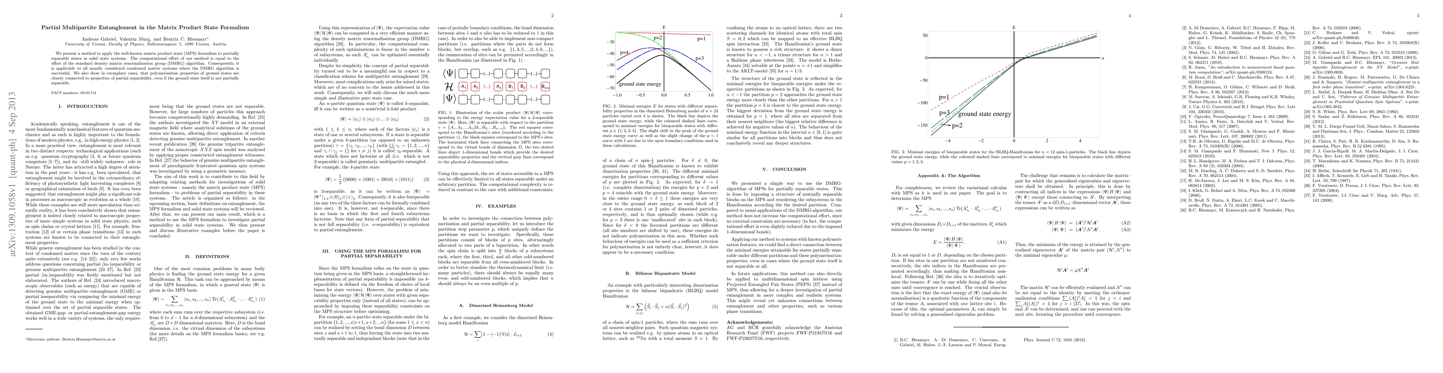 This research introduces a method using the matrix product state (MPS) formalism to analyze partially separable states in solid-state systems, requiring the same computational effort as the standard DMRG algorithm. It demonstrates a link between polymerization properties of ground states and partial separability, applicable to systems where DMRG succeeds.