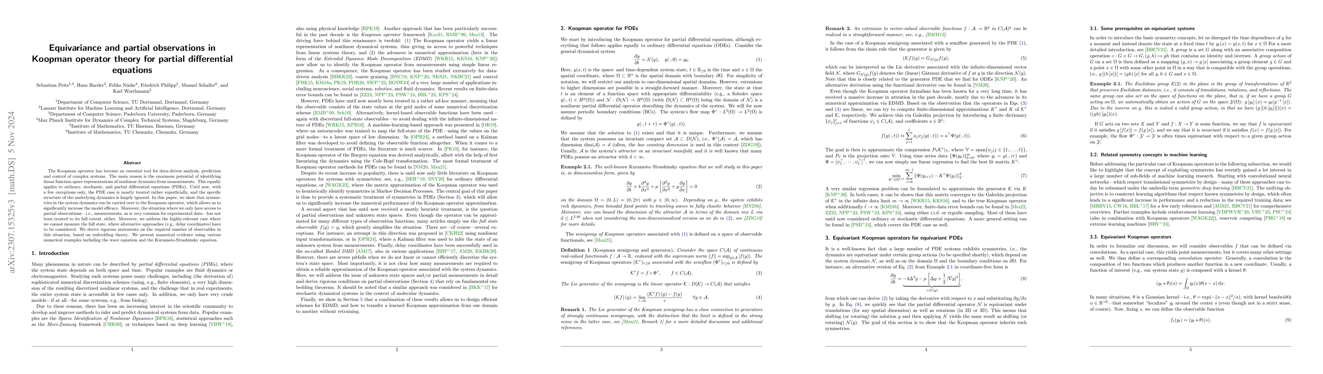 This paper explores the application of Koopman operator theory to large-scale dynamical systems under partial observations and coarse graining. It addresses the limitations of the EDMD algorithm in such scenarios and demonstrates how equivariance can enhance model efficiency by leveraging system symmetries.