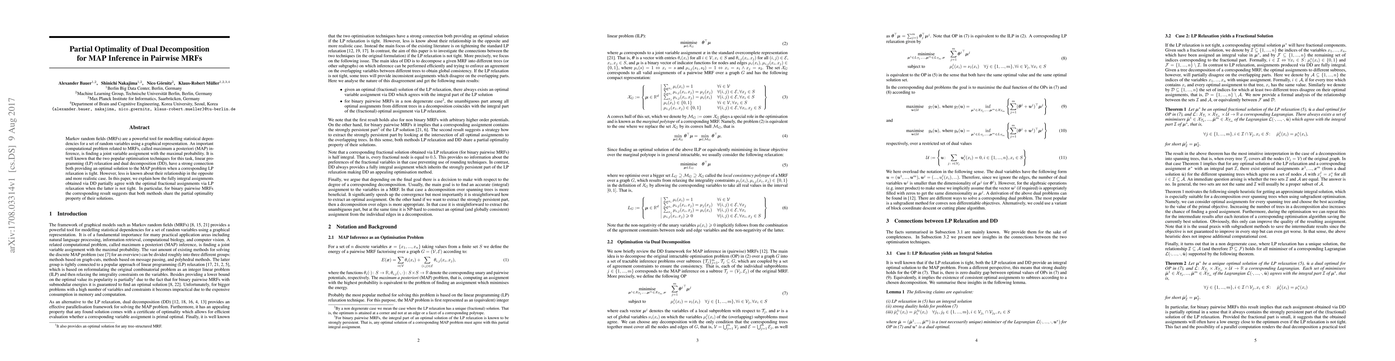 This paper explores the relationship between dual decomposition (DD) and linear programming (LP) relaxation methods for solving the maximum a posteriori (MAP) inference problem in binary pairwise Markov random fields (MRFs). It reveals that when LP relaxation is not tight, DD provides partially optimal integral assignments that align with the fractional optimal solutions from LP. This shared partial optimality property is a key finding, indicating that both methods can offer near-optimal solutions even when LP's relaxation isn't fully tight.