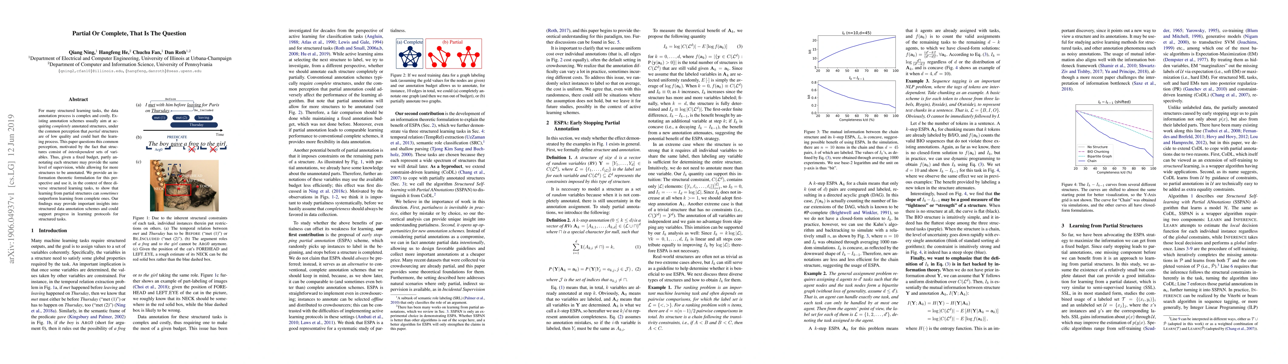 For many structured learning tasks, the data annotation process is complex and costly. Existing annotation schemes usually aim at acquiring completely annotated structures, under the common perception that partial structures are of low quality and could hurt the learning process. This paper questions this common perception, motivated by the fact that structures consist of interdependent sets of variables. Thus, given a fixed budget, partly annotating each structure may provide the same level of supervision, while allowing for more structures to be annotated. We provide an information theoretic formulation for this perspective and use it, in the context of three diverse structured learning tasks, to show that learning from partial structures can sometimes outperform learning from complete ones. Our findings may provide important insights into structured data annotation schemes and could support progress in learning protocols for structured tasks.
