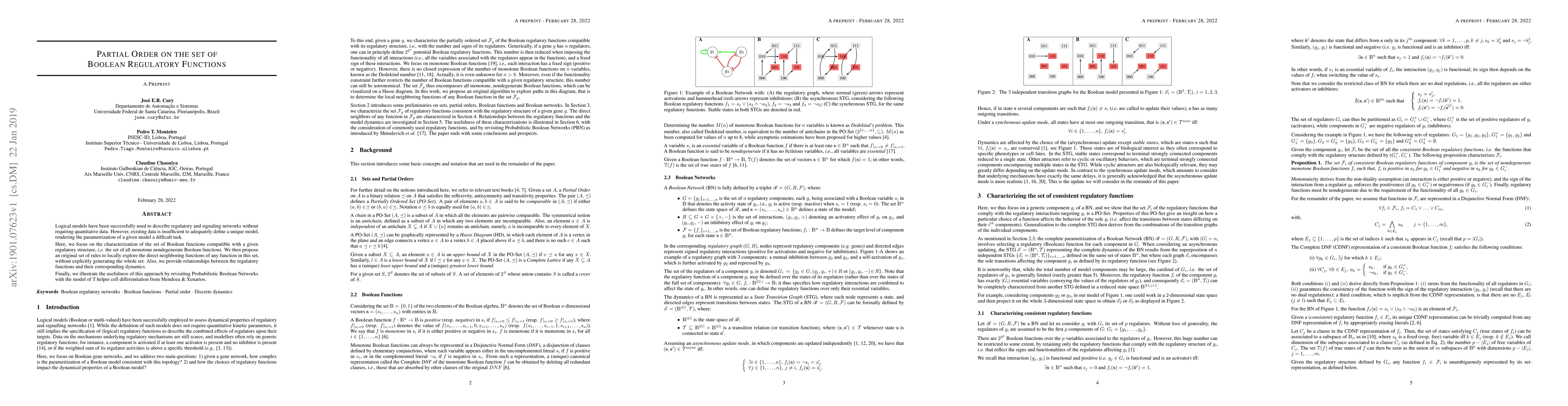 Logical models have been successfully used to describe regulatory and signaling networks without requiring quantitative data. However, existing data is insufficient to adequately define a unique model, rendering the parametrization of a given model a difficult task. Here, we focus on the characterization of the set of Boolean functions compatible with a given regulatory structure, i.e. the set of all monotone nondegenerate Boolean functions. We then propose an original set of rules to locally explore the direct neighboring functions of any function in this set, without explicitly generating the whole set. Also, we provide relationships between the regulatory functions and their corresponding dynamics. Finally, we illustrate the usefulness of this approach by revisiting Probabilistic Boolean Networks with the model of T helper cell differentiation from Mendoza & Xenarios.