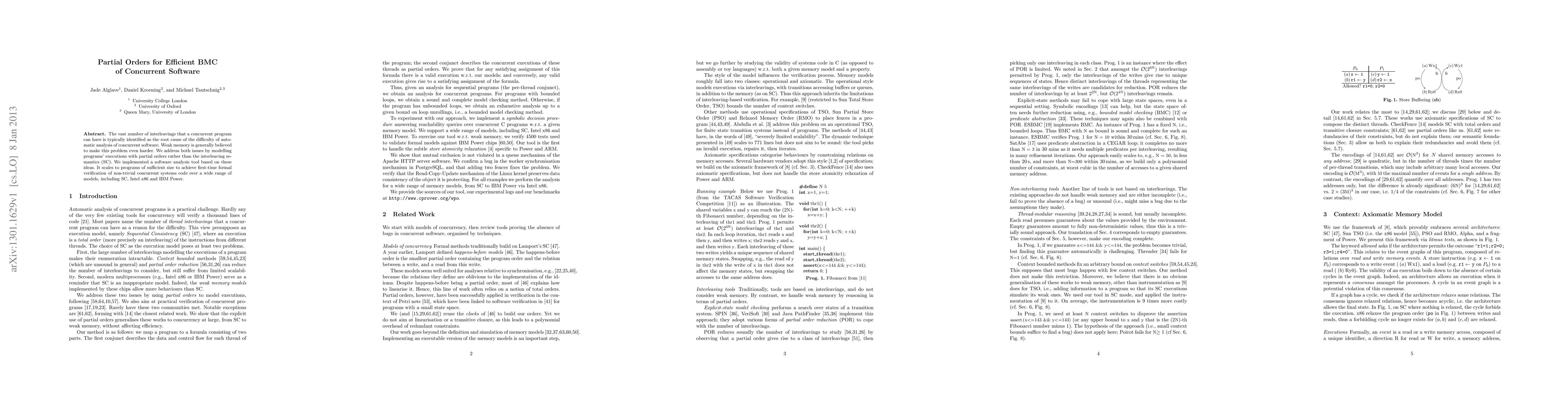 This paper proposes using partial orders instead of interleaving semantics to model concurrent program executions, addressing the complexity of automatic analysis, especially under weak memory. The authors implemented a tool based on this approach, successfully scaling to verify non-trivial concurrent systems across various models.