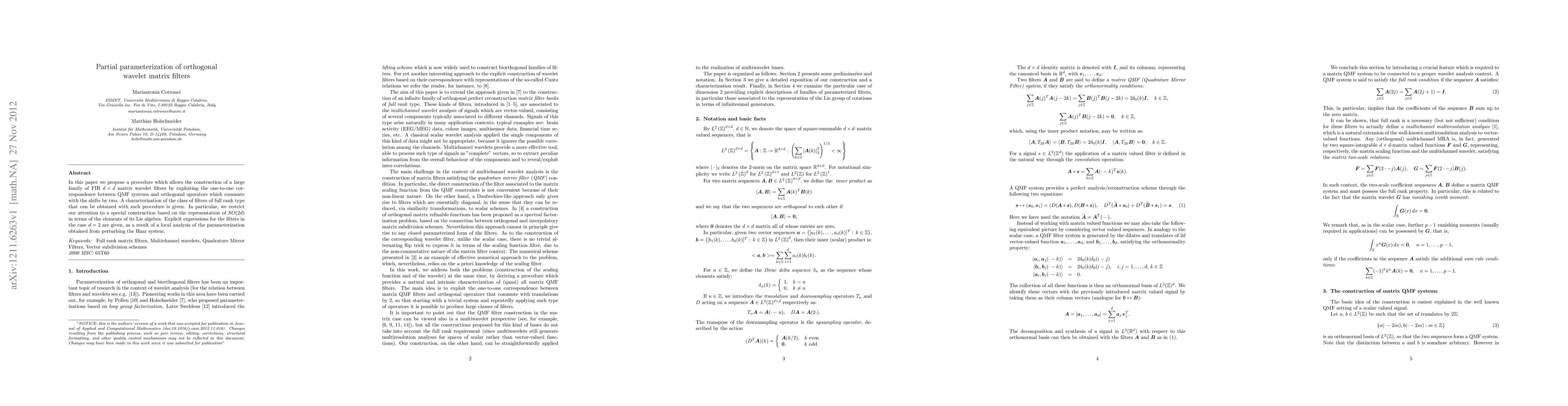 Researchers propose a method to create a wide range of FIR wavelet filters by exploiting connections between Quadrature Mirror Filter (QMF) systems and orthogonal operators. This allows for the construction of full-rank type filters with special properties.