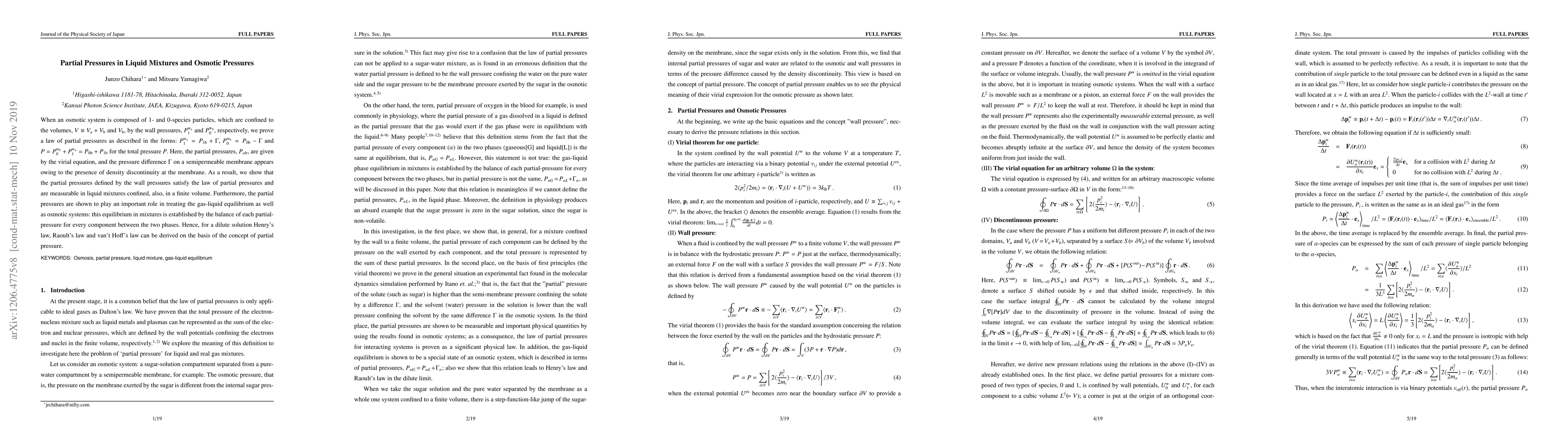 We have shown in this investigation that the partial pressure can be defined uniquely as each wall pressure exerted by a component in liquid mixtures, and is an important observable physical quantity. As a consequence of this definition, the law of partial pressures is applicable to liquid mixtures with strong interactions. Furthermore, it has been shown here that the gas-liquid phase equilibrium in mixtures is established by the balance of each partial-pressure for every component between the two phases. Hence, for a dilute solution Henry's law, Raoult's law and van't Hoff's law can be derived on the basis of the concept of partial pressure.