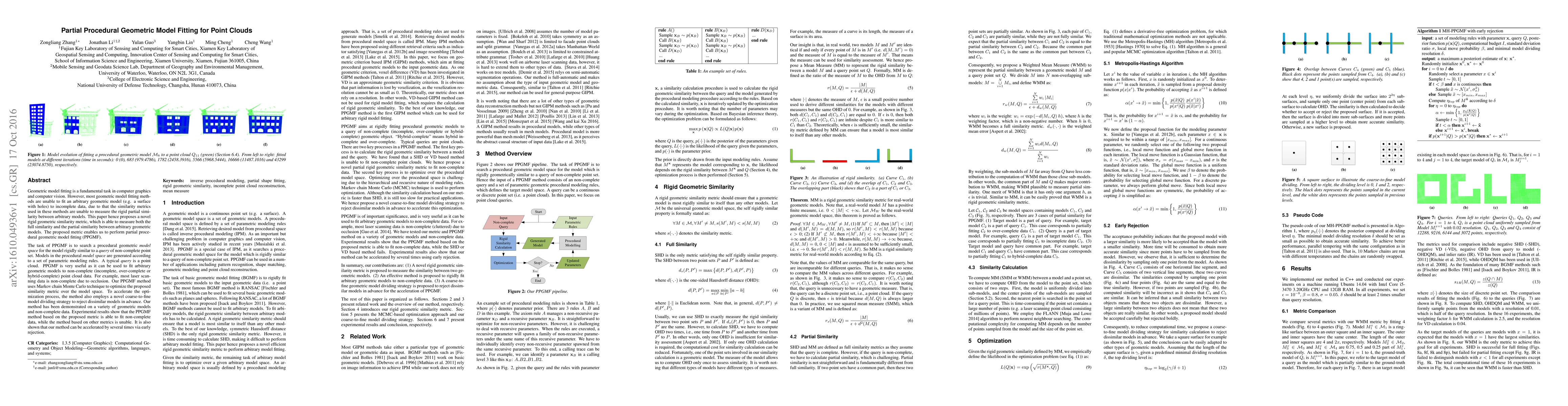 This paper introduces a novel rigid geometric similarity metric for partial procedural geometric model fitting (PPGMF) to incomplete point clouds. The proposed metric enables fitting of arbitrary geometric models to non-complete data, using Markov chain Monte Carlo optimization and a coarse-to-fine strategy for acceleration, demonstrating superior performance over existing methods.