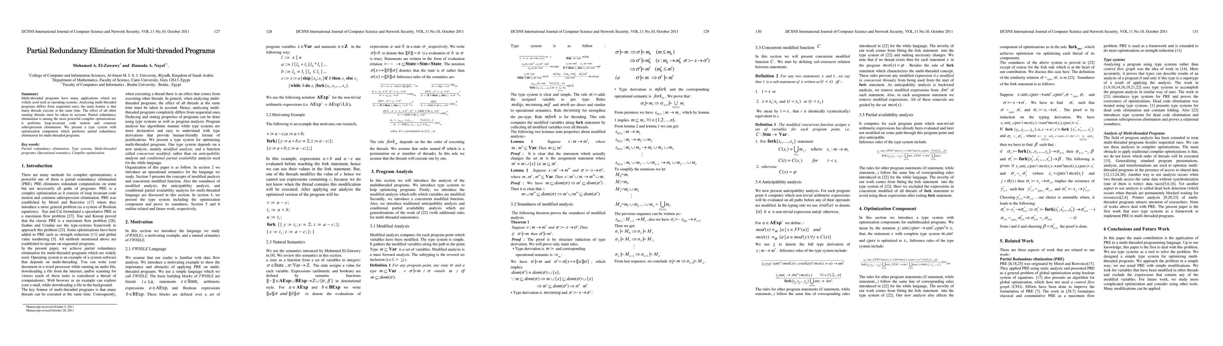 This paper proposes a type system with an optimization component to perform partial redundancy elimination in multi-threaded programs, addressing the unique challenges of concurrent thread execution through loop-invariant code motion and common subexpression elimination.