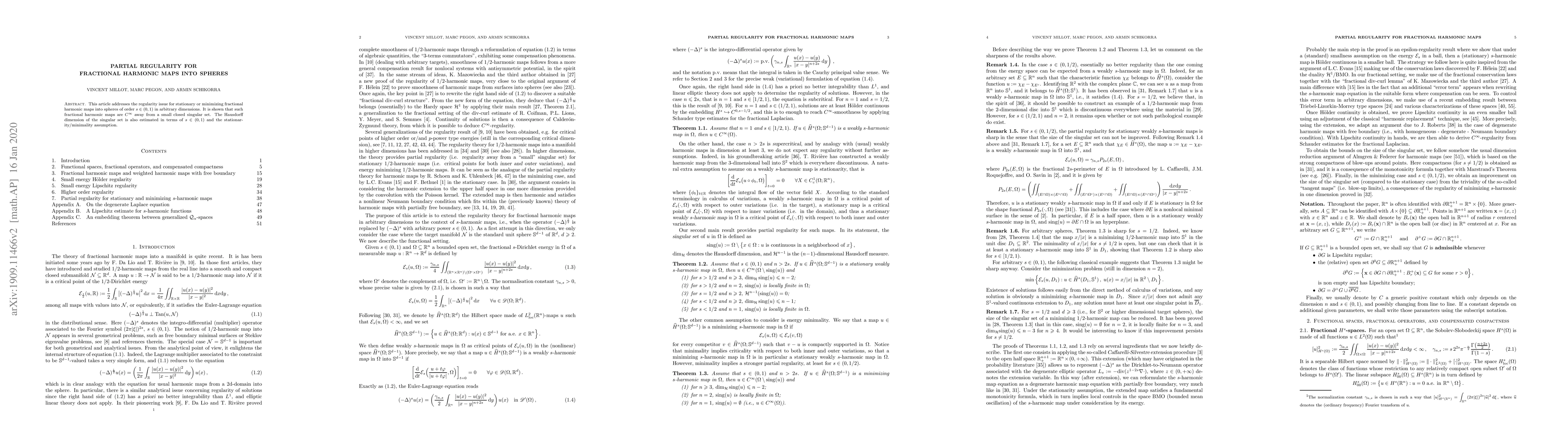 This paper investigates the regularity of fractional harmonic maps into spheres, proving they are smooth except for a small singular set, with the Hausdorff dimension of this set dependent on the fractional order $s$ and the map's stationarity or minimality.
