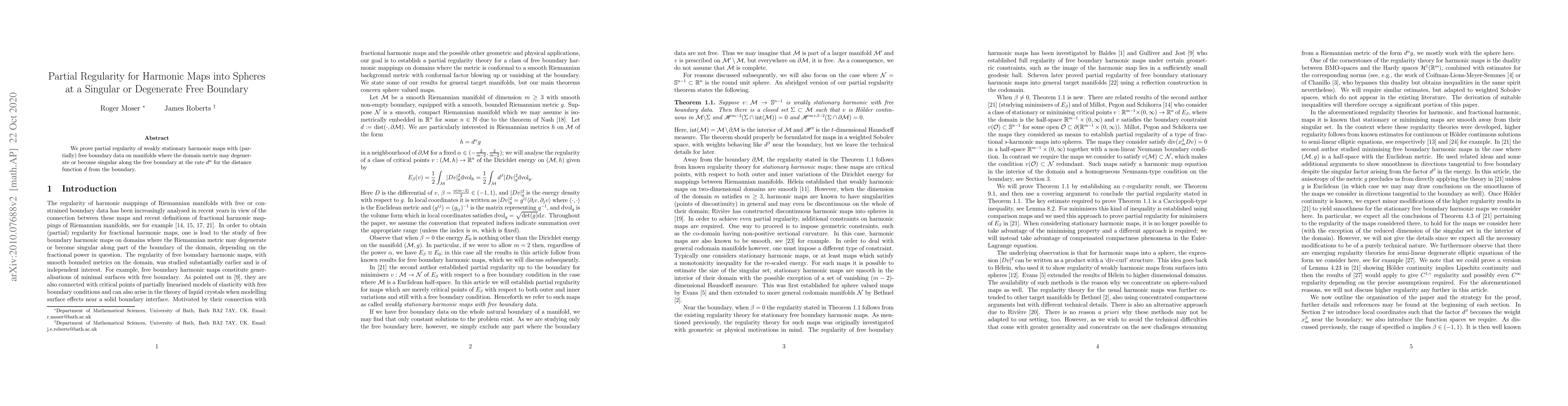 Summary: This paper establishes partial regularity for weakly stationary harmonic maps with free boundary data on manifolds where the domain metric can degenerate along the boundary, proving the maps are regular except on a set of lower dimension.