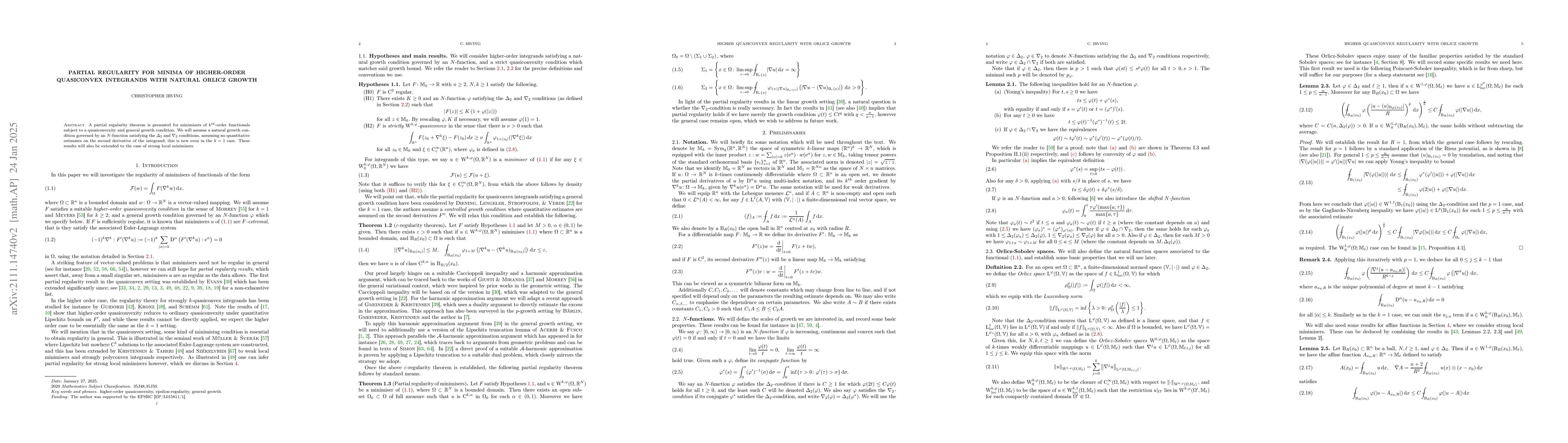 A partial regularity theorem is presented for minimisers of $k$th-order functionals subject to a quasiconvexity and general growth condition. We will assume a natural growth condition governed by an $N$-function satisfying the $\Delta_2$ and $\nabla_2$ conditions, assuming no quantitative estimates on the second derivative of the integrand; this is new even in the $k = 1$ case. These results will also be extended to the case of strong local minimisers.
