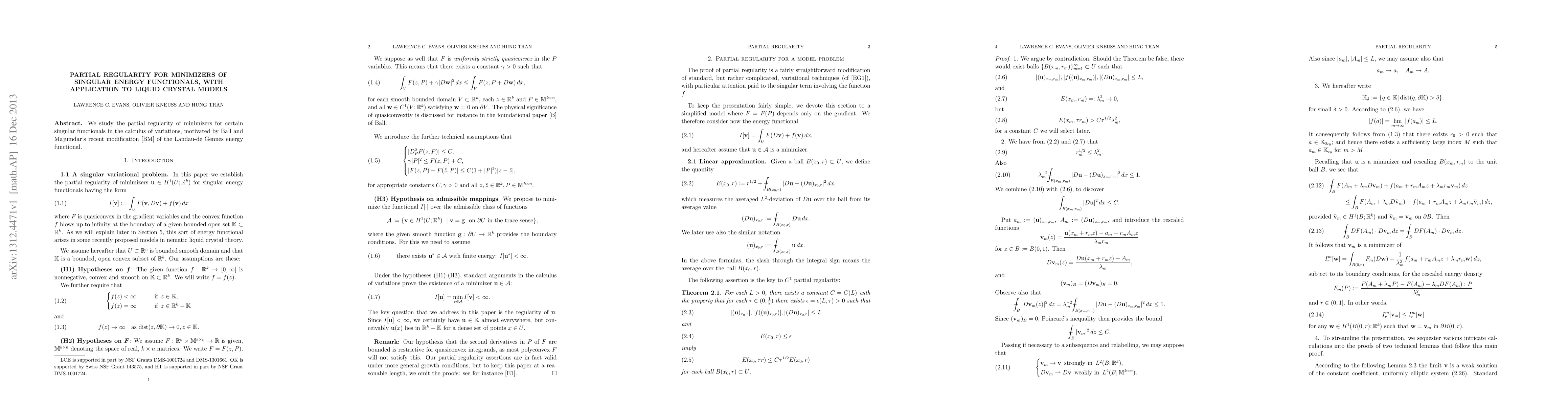 Summary: This paper investigates the partial regularity of minimizers for singular energy functionals, focusing on modifications of the Landau-de Gennes model for liquid crystals. It establishes regularity results for these minimizers, contributing to the understanding of liquid crystal behavior.