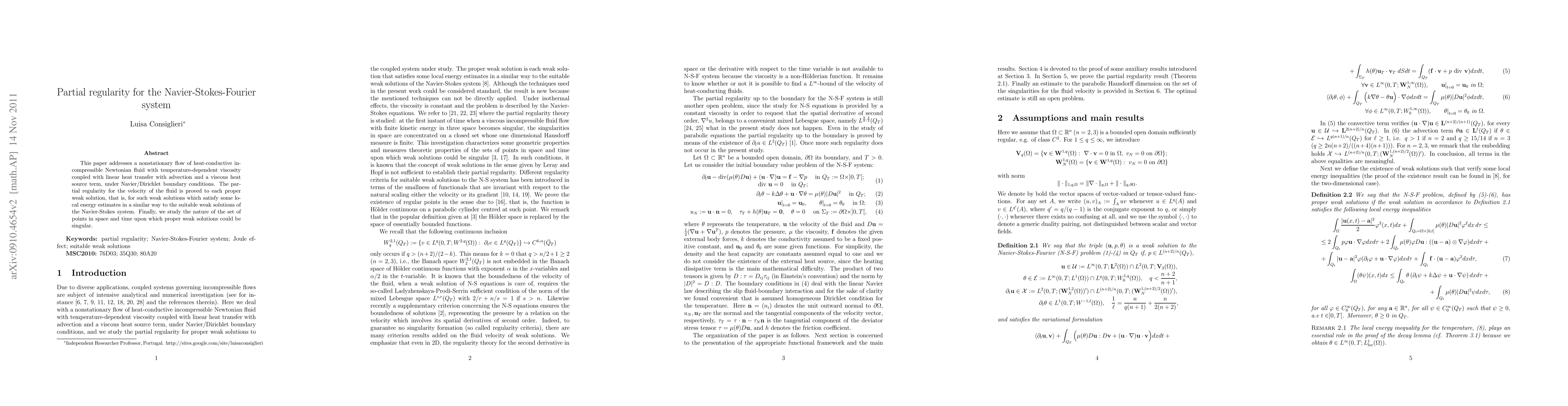 This paper proves partial regularity for the velocity of a nonstationary heat-conductive incompressible fluid under Navier-Stokes-Fourier conditions, establishing that proper weak solutions satisfy local energy estimates. It also examines the nature of singularities in such solutions.