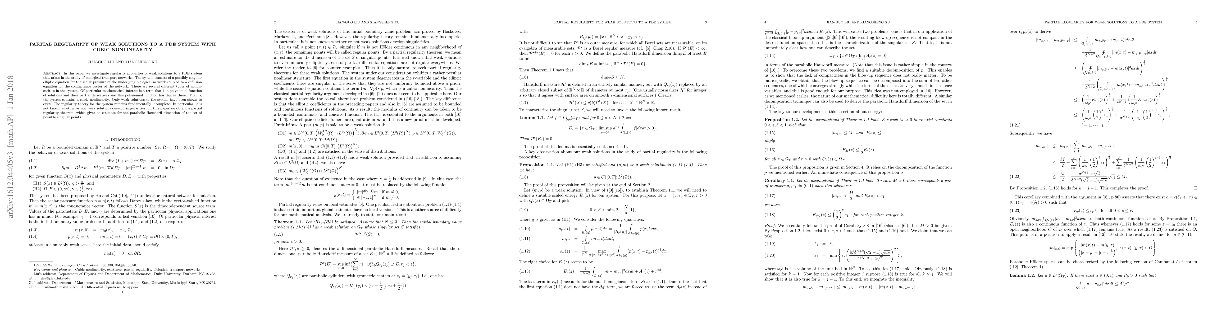 This paper investigates the regularity properties of weak solutions to a PDE system with cubic nonlinearity arising in biological transport networks. It establishes a partial regularity theorem, providing an estimate for the parabolic Hausdorff dimension of the set of potential singular points.