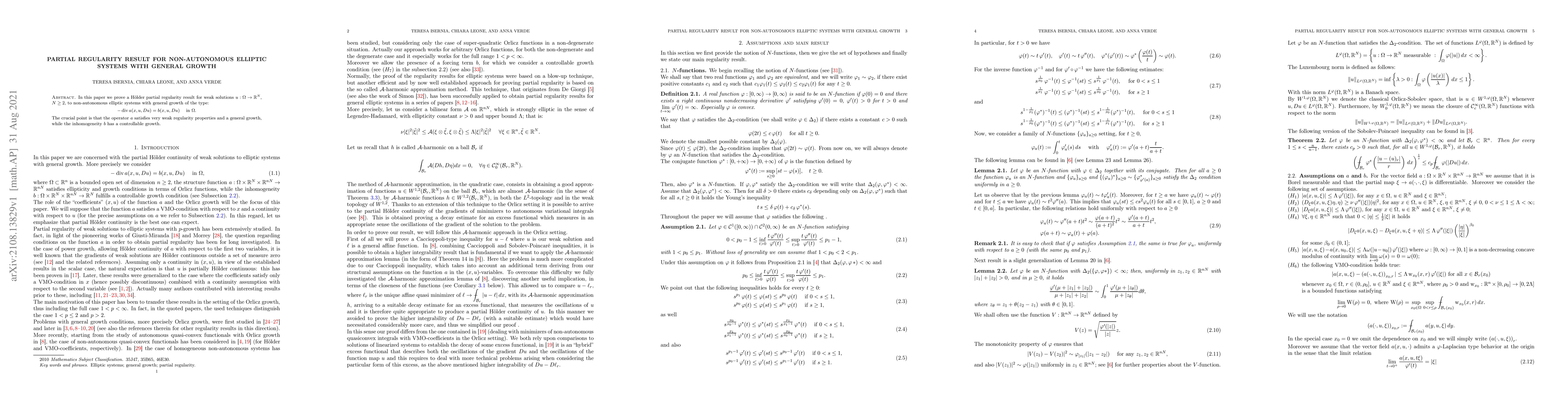 In this paper we prove a H\"older partial regularity result for weak solutions $u:\Omega\to \mathbb{R}^N$, $N\geq 2$, to non-autonomous elliptic systems with general growth of the type: \begin{equation*} -\rm{div}\, a(x, u, Du)= b(x, u, Du) \quad \mbox{ in } \Omega. \end{equation*} The crucial point is that the operator $a$ satisfies very weak regularity properties and a general growth, while the inhomogeneity $b$ has a controllable growth.