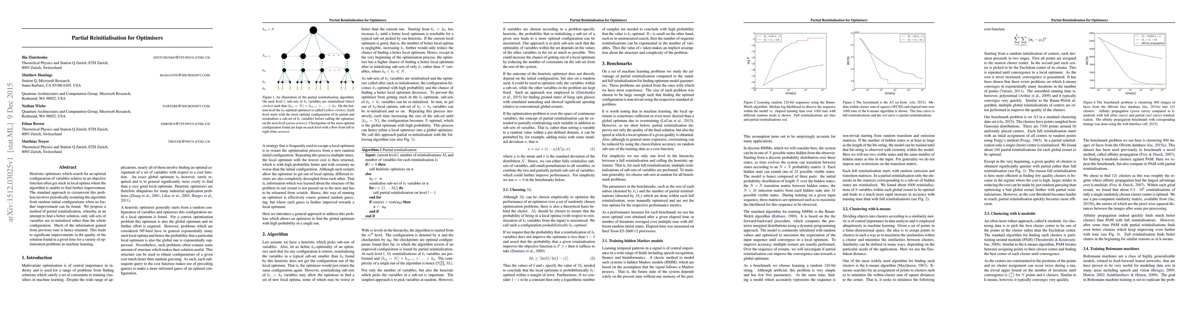 Researchers proposed a method called partial reinitialization to improve heuristic optimizers' performance in finding better solutions for machine learning problems. By only partially reinitializing sub-sets of variables, they gained significant improvements in solution quality while retaining most of the information from previous runs.