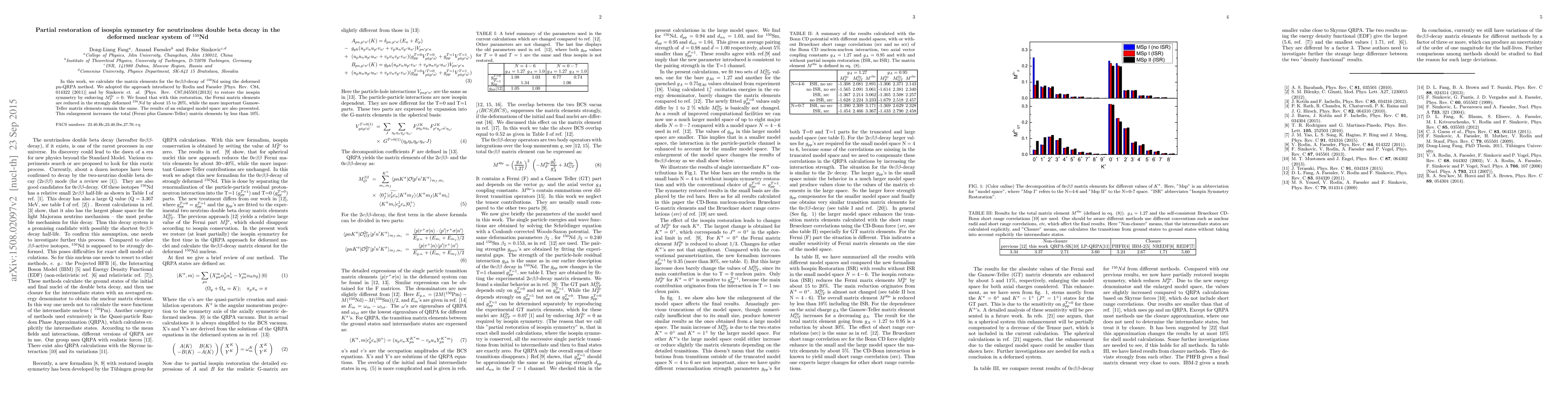 In this work, we calculate the matrix elements of $0\nu\beta\beta$-decay of $^{150}$Nd with the deformed pn-QRPA method. We adopted the approach introduced by Rodin, Faessler [Phys. Rev. C84, 014322 (2011)] and Simkovic {\it et. al.} [Phys. Rev. C87,045501(2013)] to restore the isospin symmetry by enforcing $M^{2\nu}_F=0$. We found that with this restoration, the Fermi matrix elements are reduced by about 30\% while the more important Gamow-Teller matrix elements remains the same. The results of an enlarged model space is also presented, which changes the matrix elements by less than 10\%.