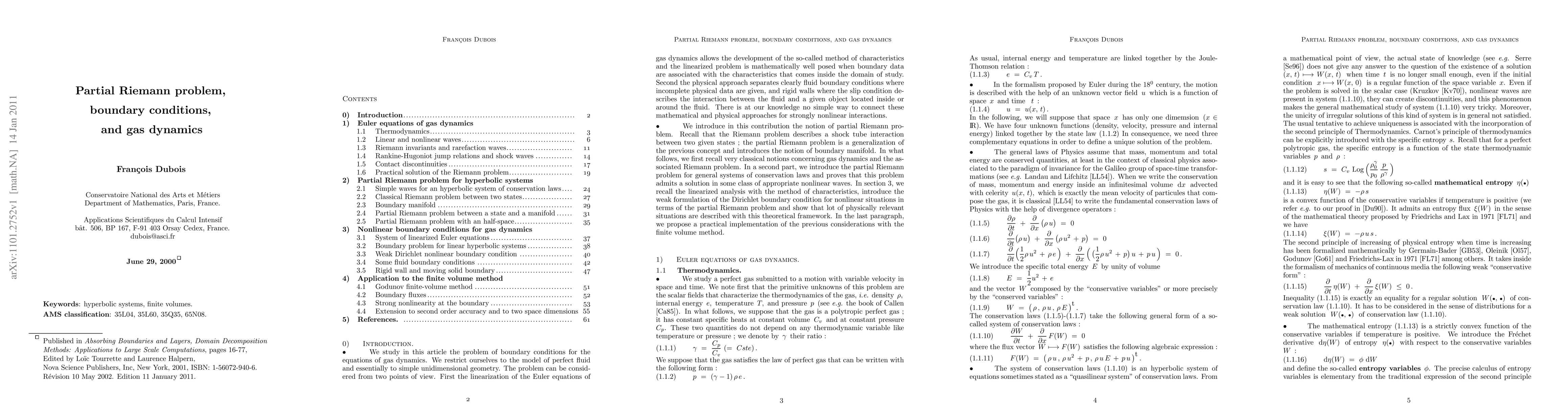 We introduce in this contribution the notion of partial Riemann problem. Recall that the Riemann problem describes a shock tube interaction between two given states ; the partial Riemann problem is a generalization of the previous concept and introduces the notion of boundary manifold. In what follows, we first recall very classical notions concerning gas dynamics and the associated Riemann problem. In a second part, we introduce the partial Riemann problem for general systems of conservation laws and proves that this problem admits a solution in some class of appropriate nonlinear waves. In section 3, we recall the linearized analysis with the method of characteristics, introduce the weak formulation of the Dirichlet boundary condition for nonlinear situations in terms of the partial Riemann problem and show that lot of physically relevant situations are described with this theoretical framework. In the last paragraph, we propose a practical implementation of the previous onsiderations with the finite volume method.